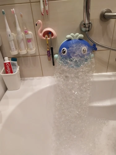 The quality of the product is great. Stronger plastic, the music can be turned off by pressing it again and the toy only makes bubbles. Only delivery was over three months.