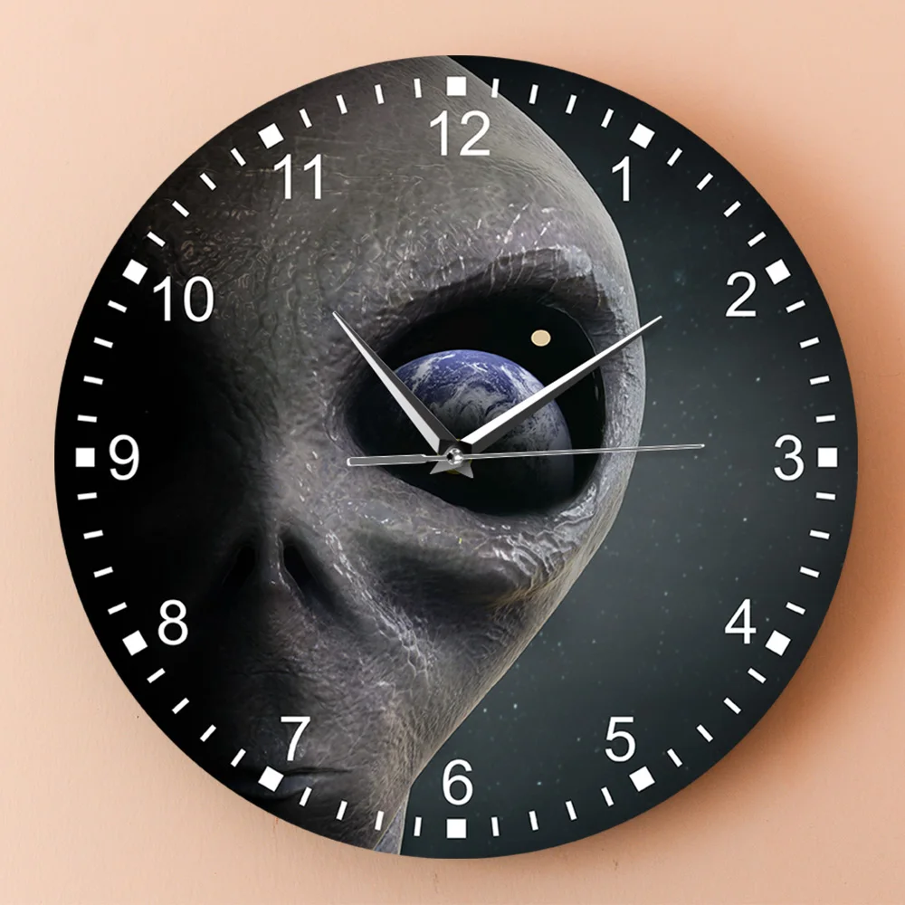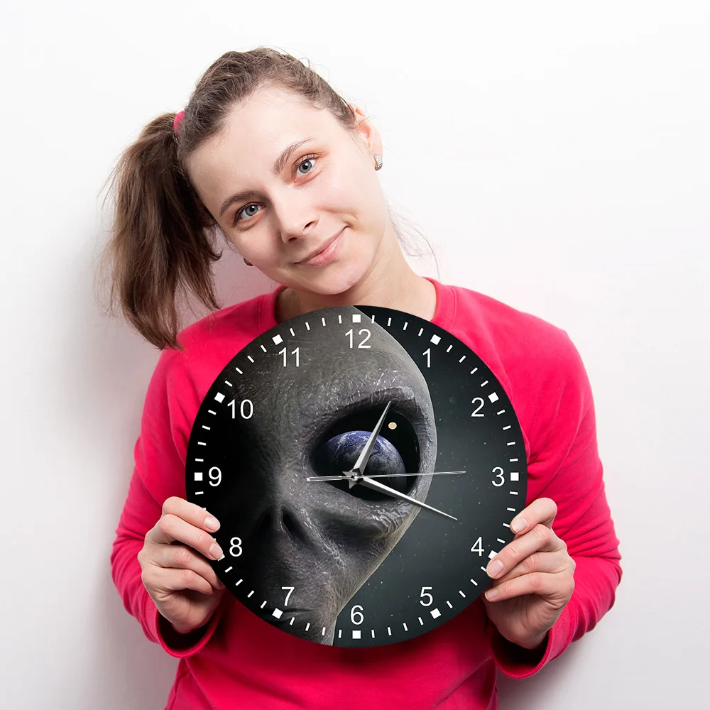 Круглые Настенные часы с изображением инопланетянина, космоса, планеты, пришельца, акриловые часы