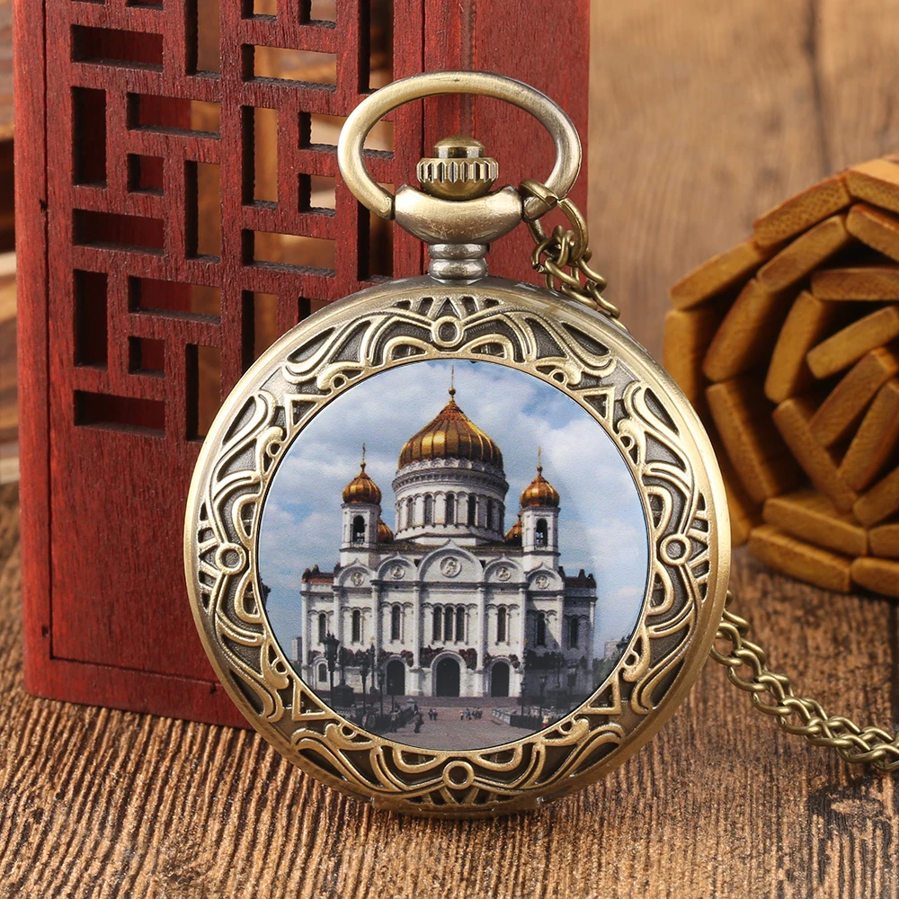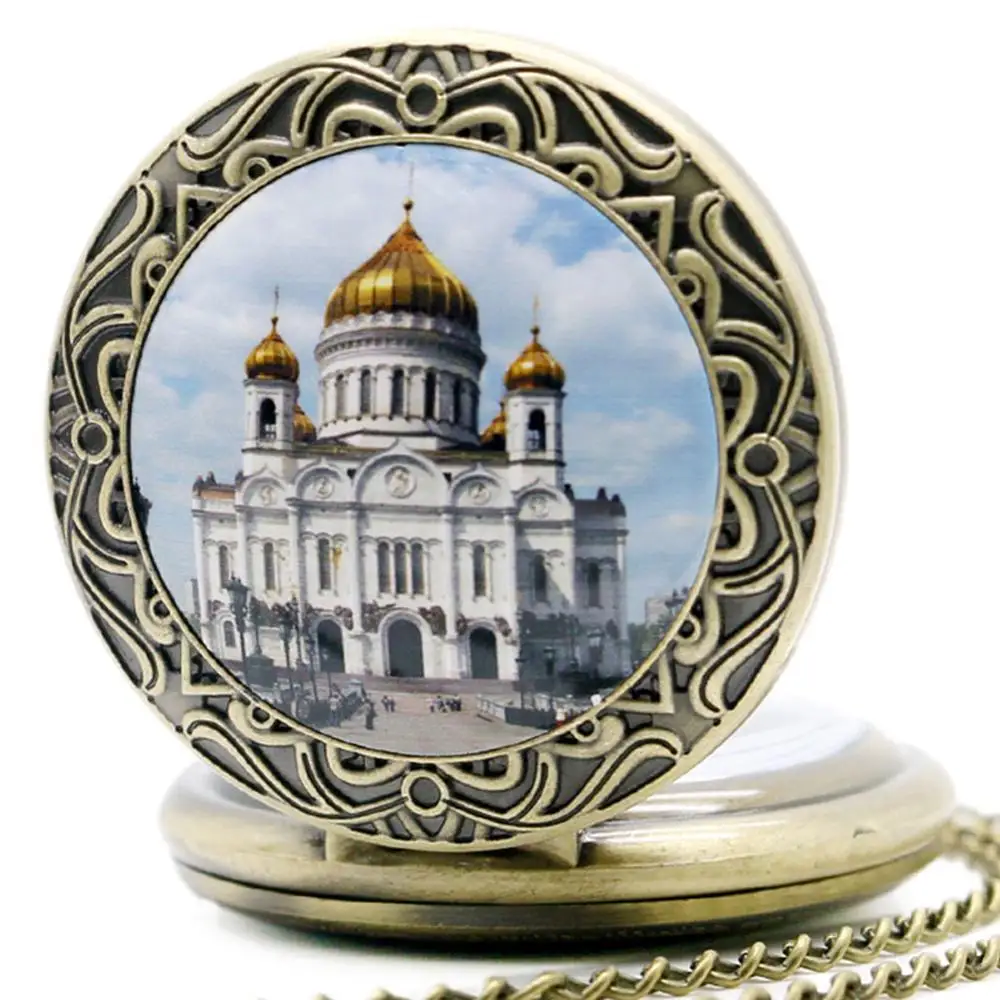 Ортодоксальная церковь в Москву известный русский христианский Спаситель соборный узор кварцевые карманные часы религиозное ожерелье кулон часы