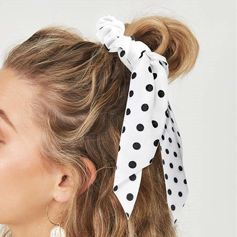 Резинка для волос женская, эластичная, в горошек, с цветочным принтом и бантом, 2020