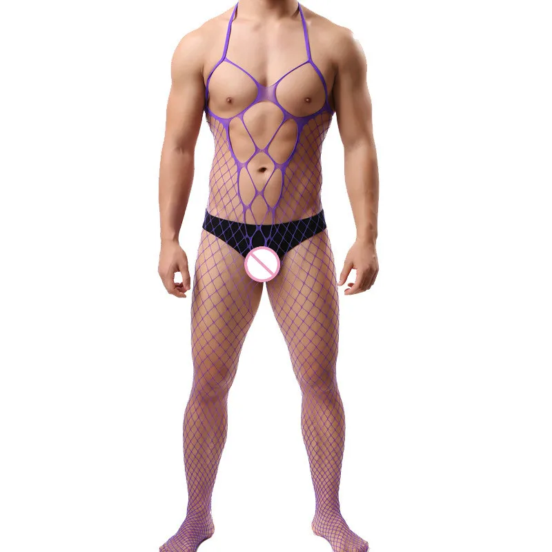 Комбинезон мужской с вырезами, пикантное нижнее белье для геев, ночная рубашка для взрослых, экзотический сексуальный, сетчатый, Прямая поставка