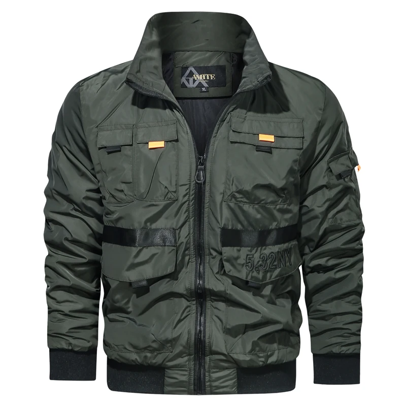 Куртка-бомбер мужская, с карманами, в стиле милитари, Осень-зима