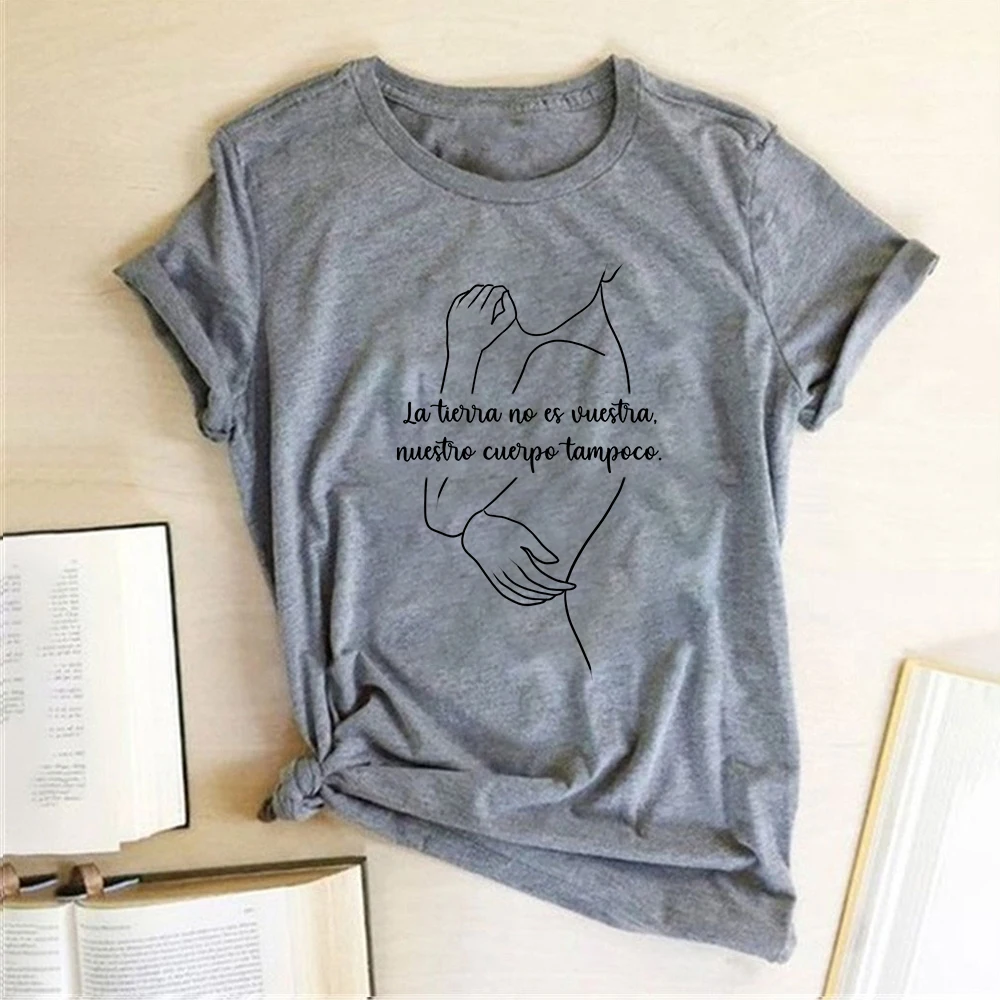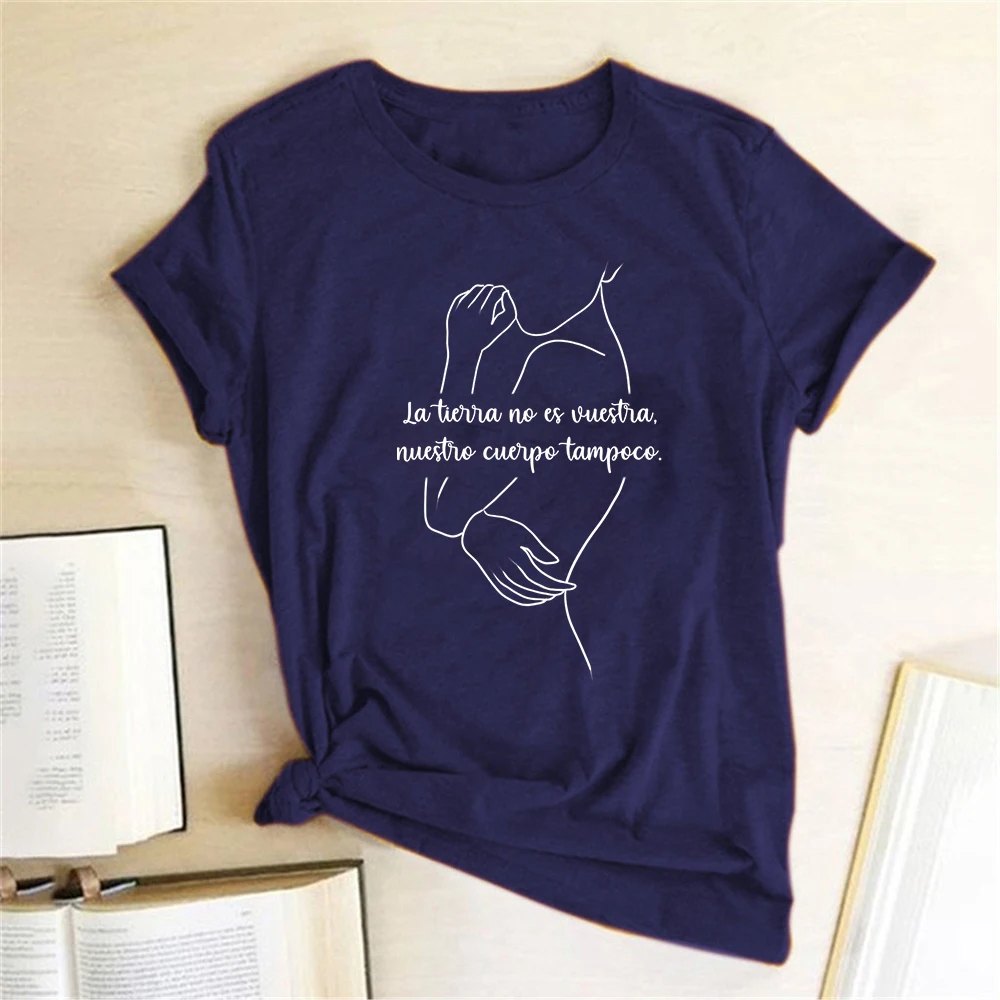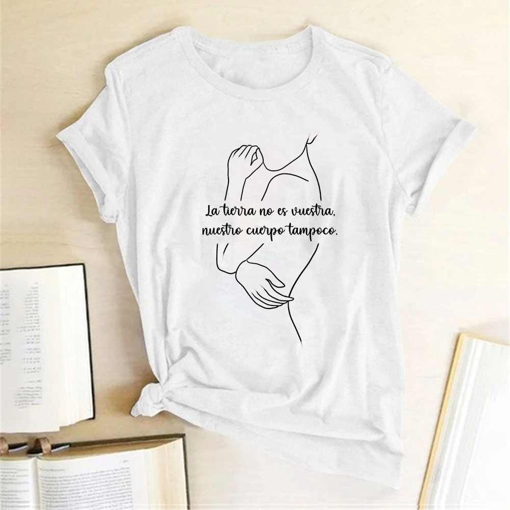 Женская футболка с короткими рукавами и круглым вырезом La Tierra No Es Vuestra Nuestro Cuerpo Tampoco, летняя футболка
