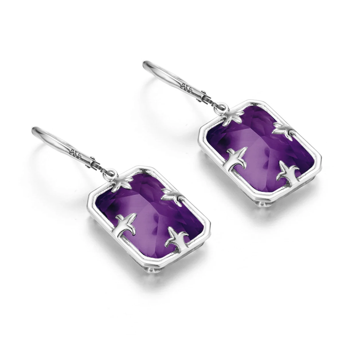 Серьги женские прямоугольные из серебра 925 пробы, с аметистом