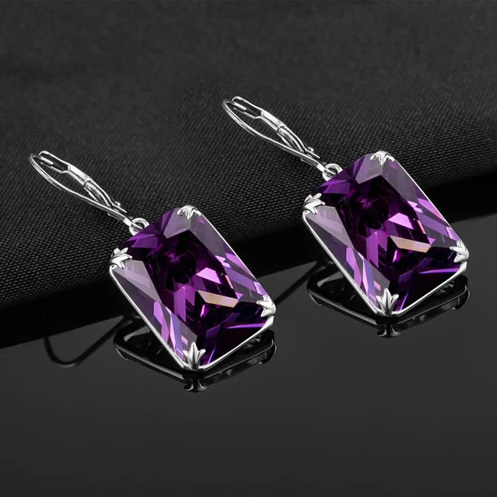 Бренд: Rosewood StoryТип камня: синтетический АметистРазмер основного камня: 14*18,5 ммЧеткость камня: VVSЦвет камня: ПрозрачныйФорма камня: квадратТип металла: серебро 925 пробыЦвет металла: античное сереброУпаковка:1 * ткань для полировки серебра,1 * Изысканная Подарочная коробка,1 * серьги с аметистом и драгоценными камнями