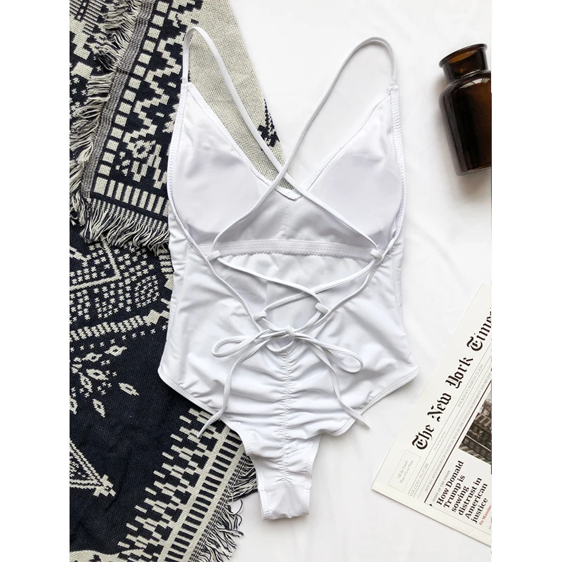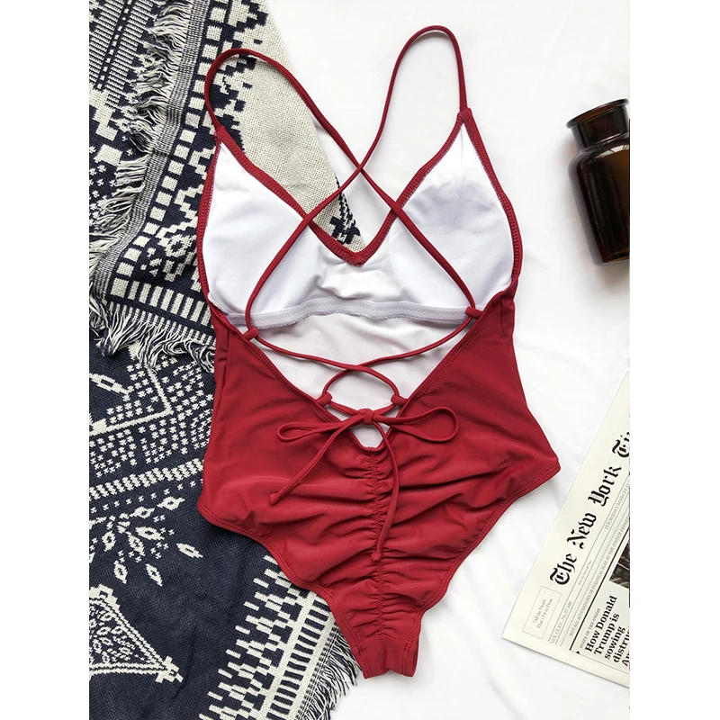 Купальник женский, 13 цветов, с V-образным вырезом, на шнуровке, цельный костюм, ретро, Цельный купальник, однотонный, 2020