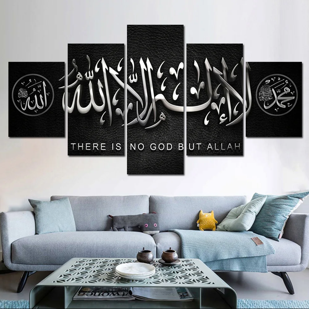 Исламская каллиграфия из Корана АЛЛАХ БОГ Плакаты и принты мусульманских домашний Декор 5 панелей Wall Art Картина на холсте, украшение