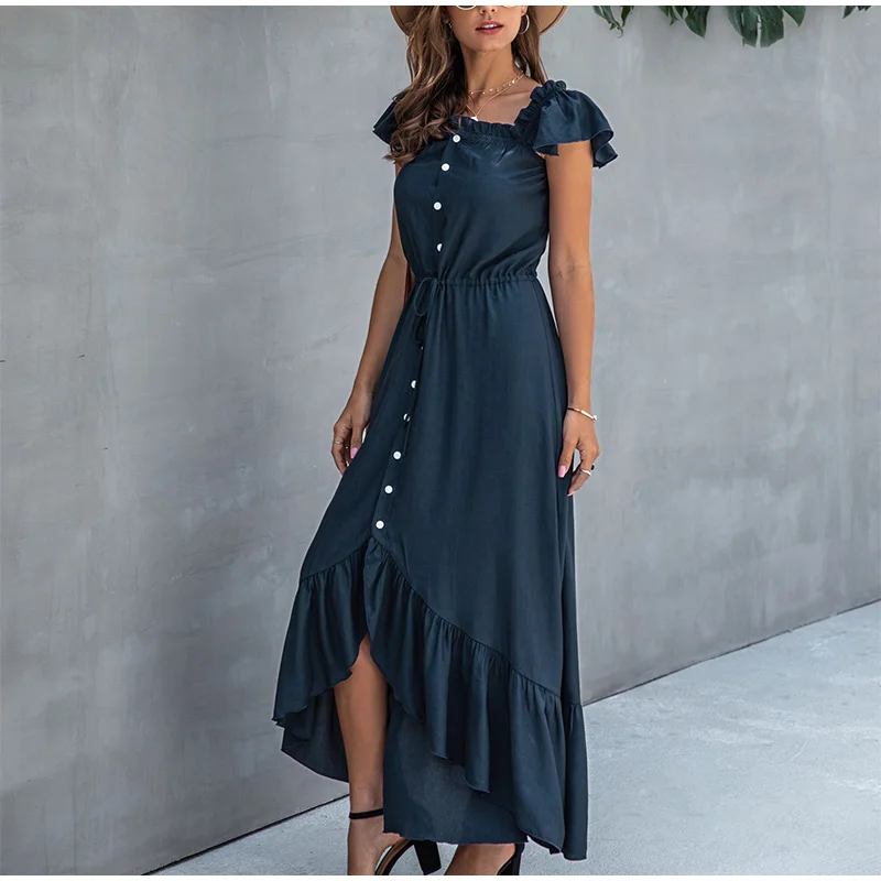 Style 2Buttoned Ruffled High Waist Long Dresses For Women