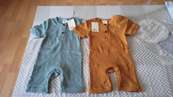 качество хорошее, цвета как на фотке. но, размеры, которые продавец указывает, и то, что приходит отличается. будто бирки вешают на тяп ляп. заказываешь размер их 70, например, а приходит будто 60 по параметрам...на фото пример. лежит вещь 70 размера посреди и 60 справа, но, они же почти одинаковые. хотя это на 3м и на 6м ребенка. сделала частичный возврат, продавец тут же вернул деньги. спасибо ему.