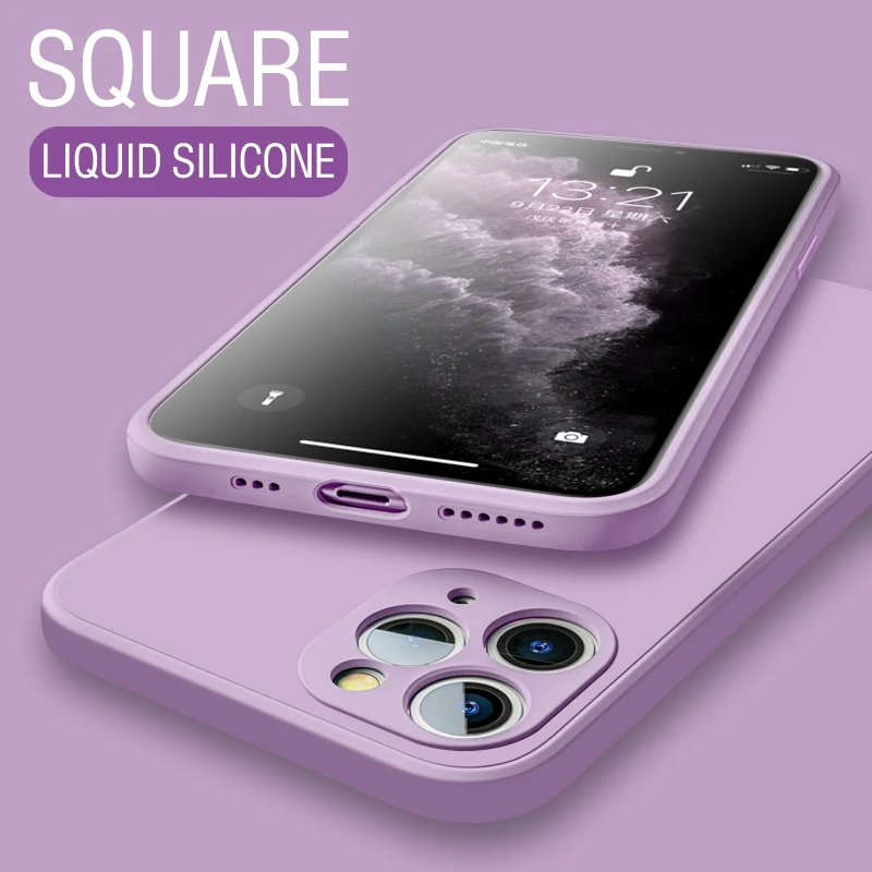 Роскошный квадратный Мягкий чехол из жидкого силикона для iPhone 12...