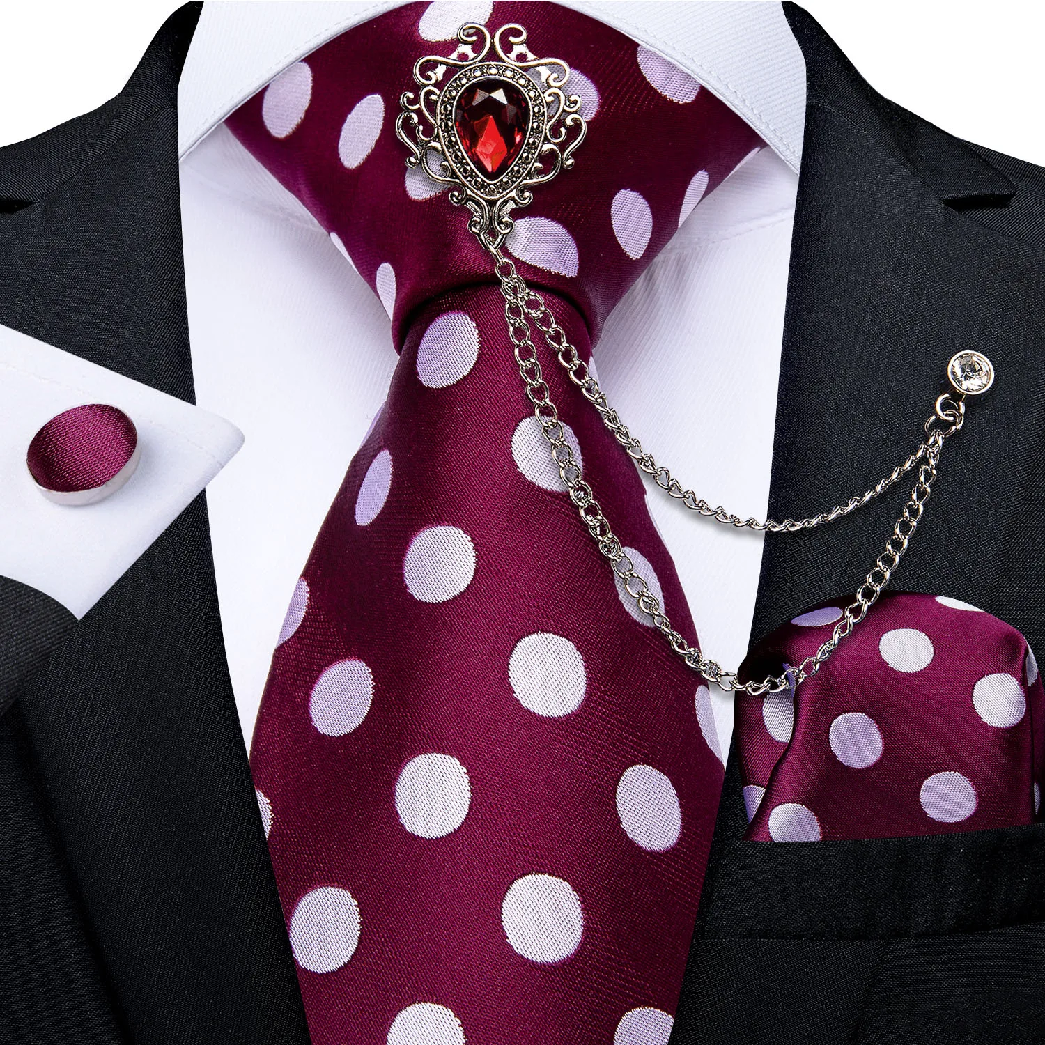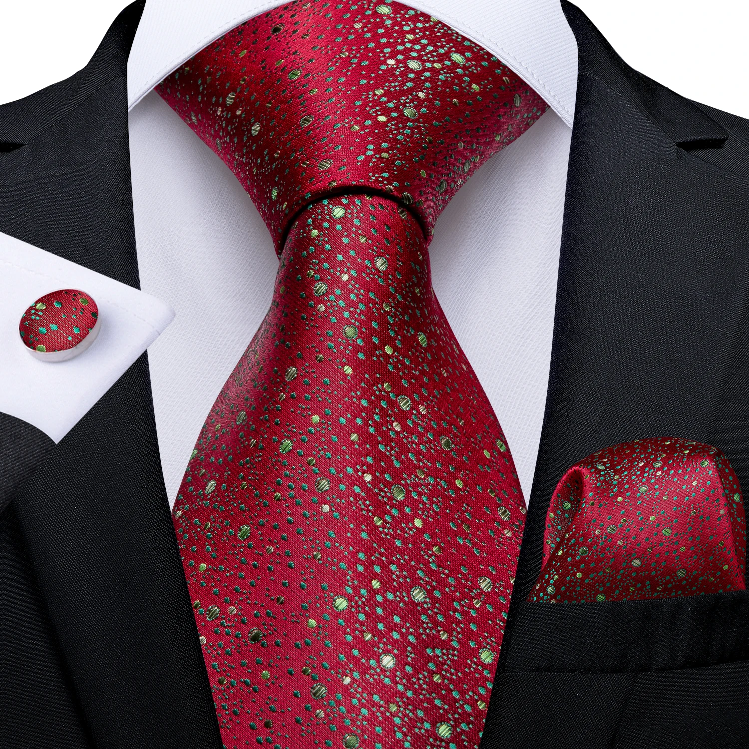 Модный мужской шелковый галстук в зеленый горошек 8 см деловой галстук для свадебной вечеринки набор запонок носовой платок Брошь Подарочный мужской галстук DiBanGu