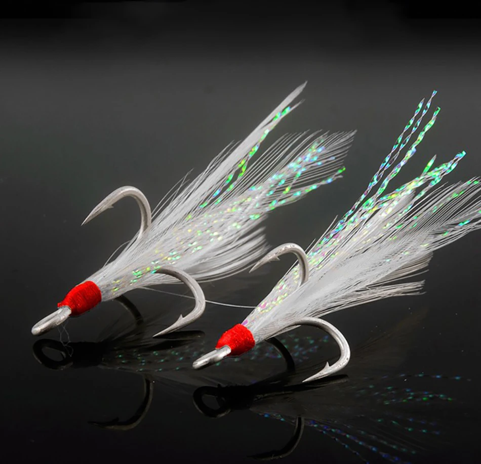 Тройные рыболовные крючки, 25 шт., рыболовные снасти, острый тройной рыболовный крючок с бородкой из углеродистой стали, морские аксессуары с перьями