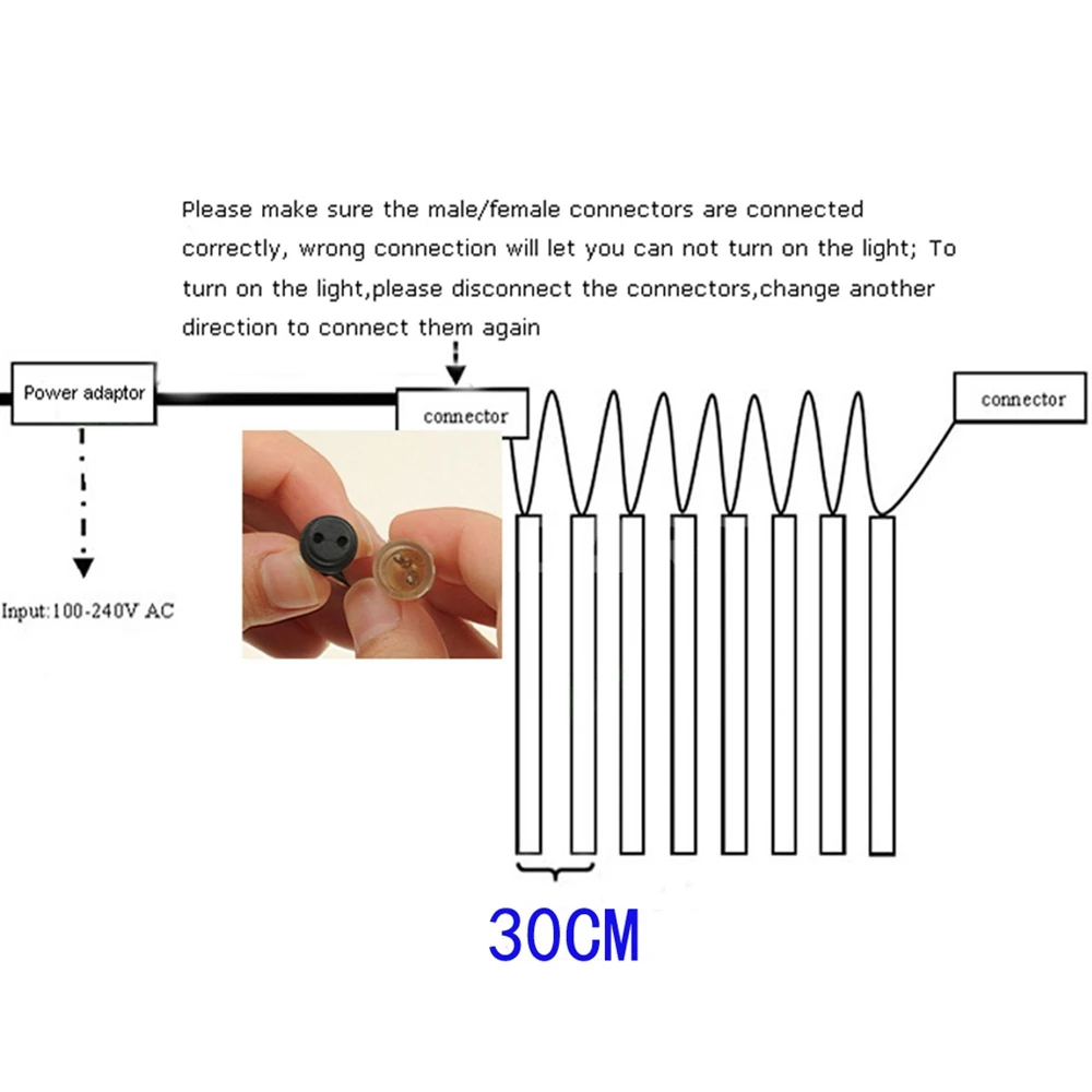 Стандарт:Штепсельная Вилка напряжения 220V & US 110V, низкое энергопотребление и энергосбережение. Может использоваться как один, или быть подключен(До 5 гирлянд)
