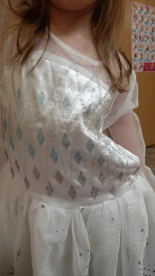Качественное платье! Дочка в восторге! Носили много раз, стирала сразу после получения- не отвалилась не одна стразинка или блестюшка. Очень рекомендую для любительниц Холодного сердца) и пришло кстати быстро!