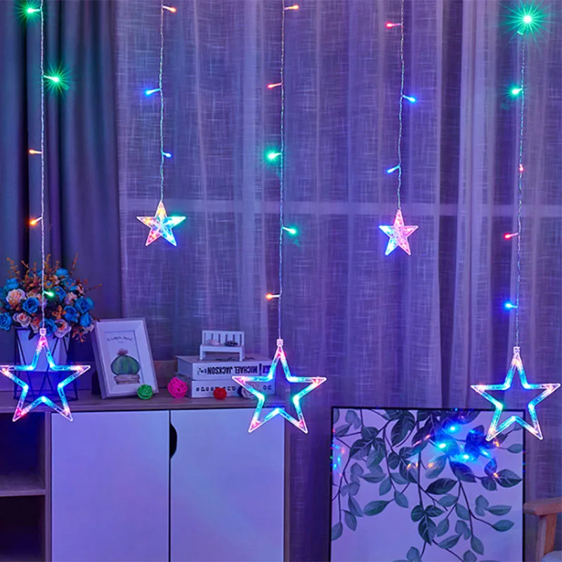 СВЕТОДИОДНЫЙ занавес со звездой, Рождественская гирлянда, наружный светодиодный мерцающий гирлянда, праздничный фестиваль, декорация на стену