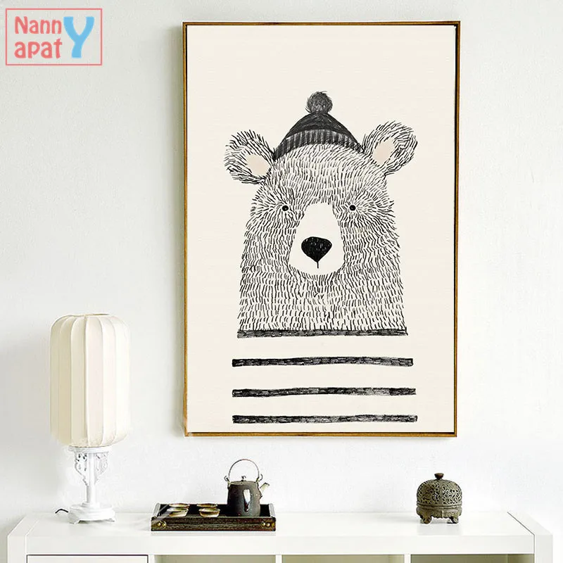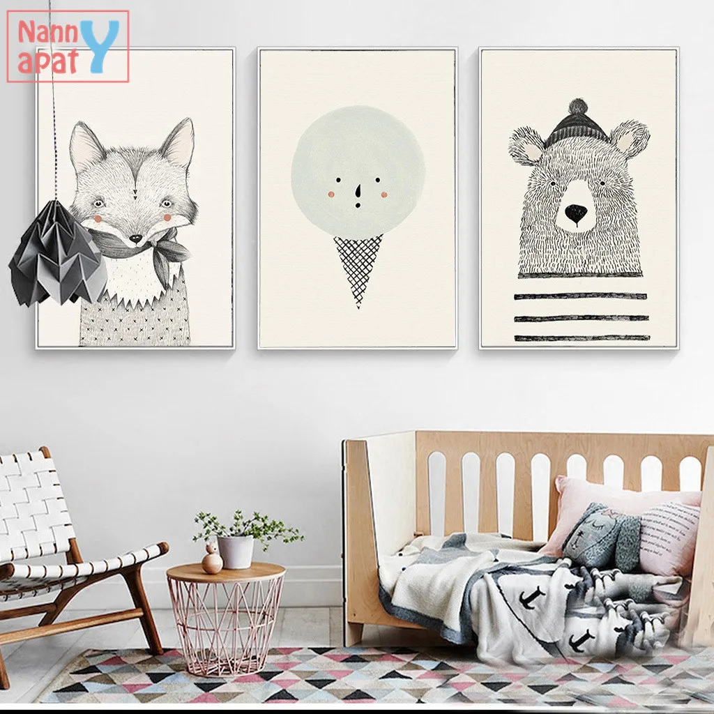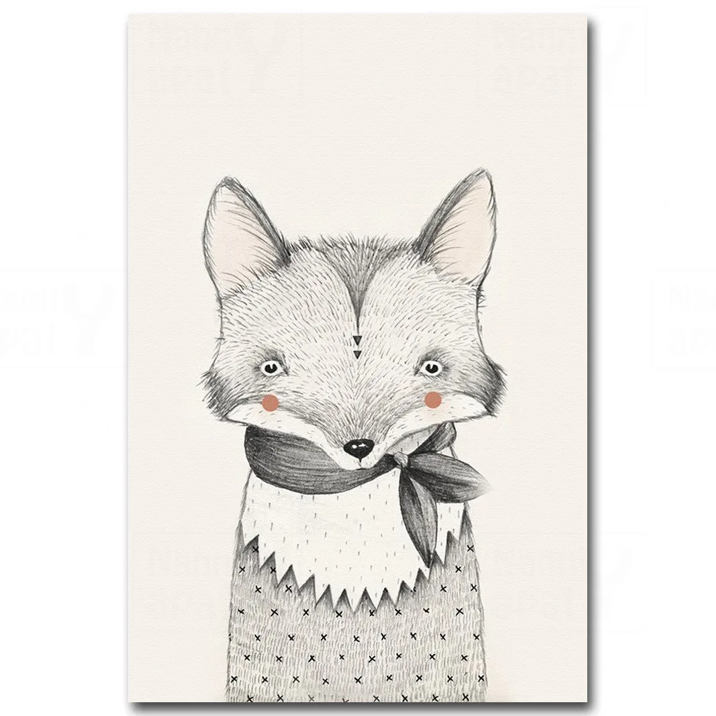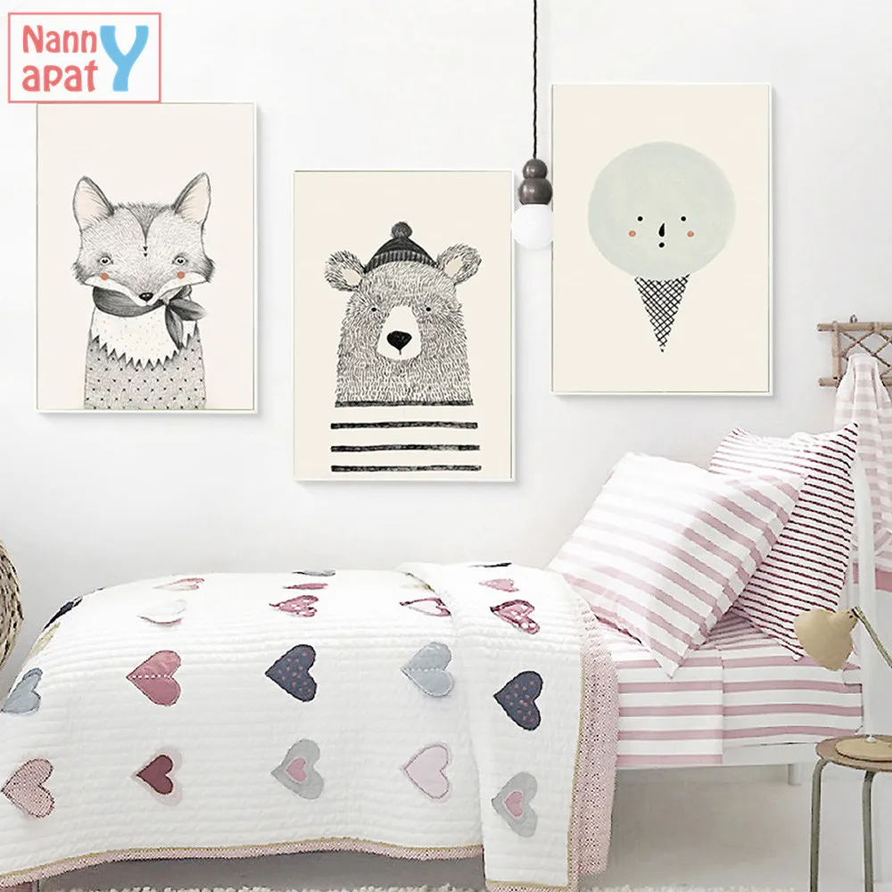 Скандинавская живопись, медведь, лиса, холст, Мультяшные животные, плакаты и принты, Настенная печать, картина, Современное украшение для детской комнаты