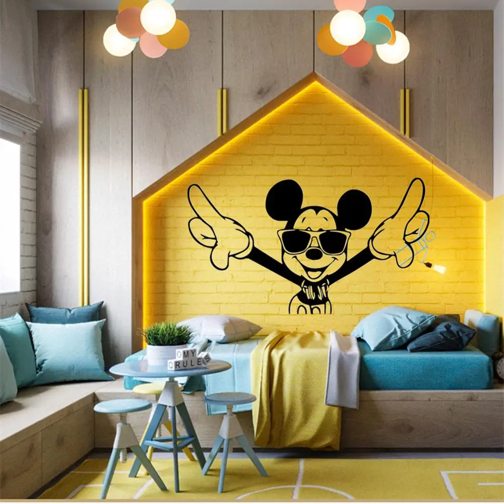 Название: стильные Микки стены Стикеры s для подростков комнат мальчиков рок-н-ролл Солнцезащитные очки мультфильм Стикеры росписи Бар вечерние Декор Наклейка С жестом Использование: детская комната, кабинет, спальня, гостиная Функция: наклейка на стену, плакат, наклейка, фотообои, пилинг и палочка Характеристики: самоклеющиеся, экологически чистые, съемные