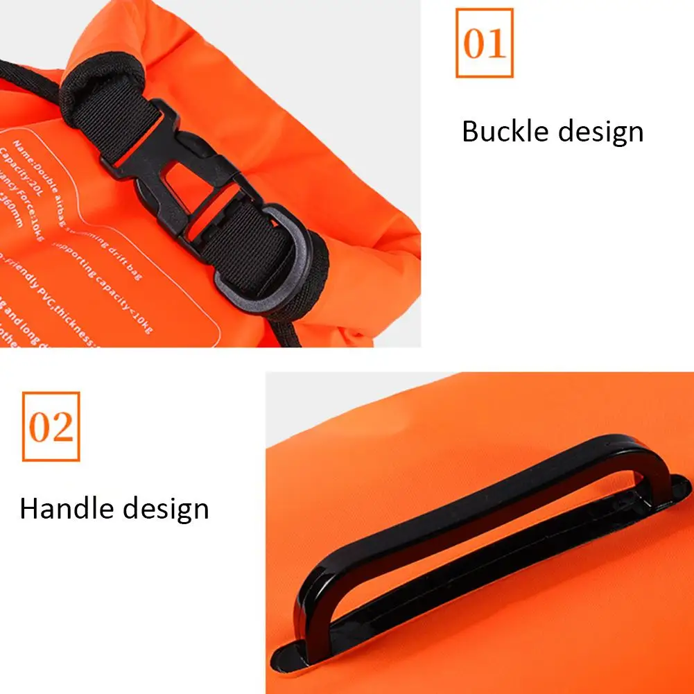 20л надувной открытый плавательный буй, буксировочный поплавок, сухой мешок, двойная воздушная сумка с поясным ремнем для плавания, спортивная сумка для хранения воды, безопасная сумка