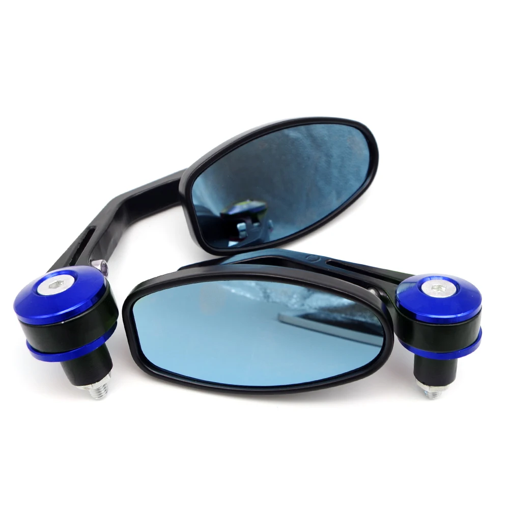 -100% абсолютно новые Aftermarket высококачественные торцевые зеркала-Материал: заготовка из алюминия-Цвет: черный с красным/синим/серебристым/золотым концом-Количество: 1 пара-Размер: Размер стекла: 4"-Универсальный подходит для всех мотоциклов 7/8''