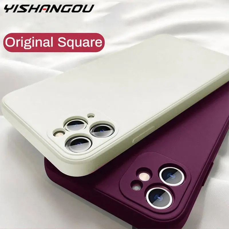 Ультратонкий квадратный силиконовый чехол для iPhone 13 12 Mini 11 ...
