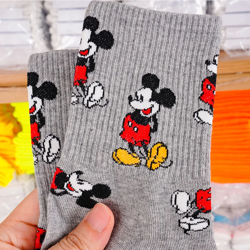 Милые однотонные хлопковые носки Disney, хлопковые носки с мультяшным принтом для игр, МиккиВинни-пухИстория игрушек в тюбике для женщин