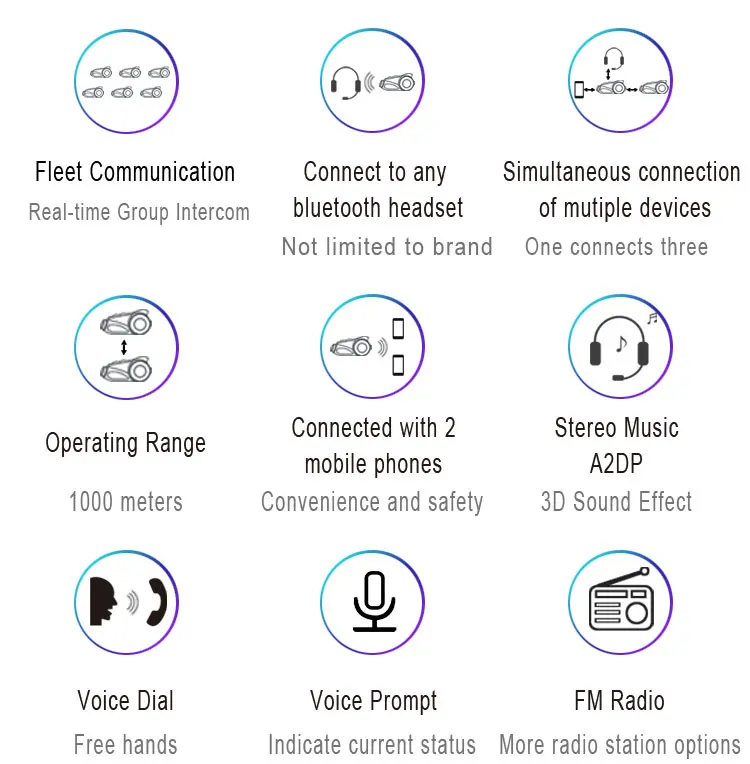 Интерком Maxto M3 для мотоциклетного шлема с поддержкой Bluetooth и Wi-Fi