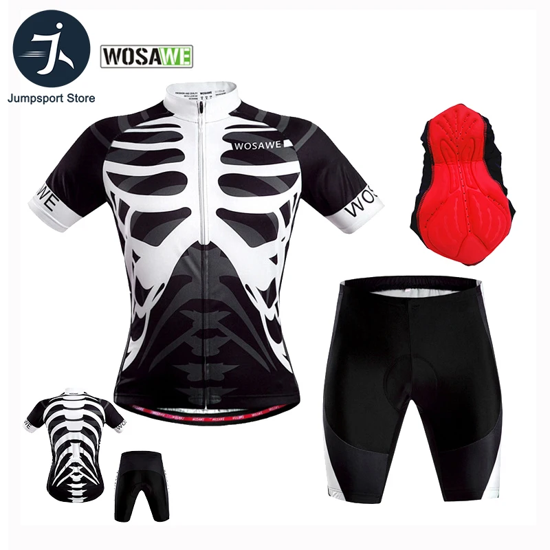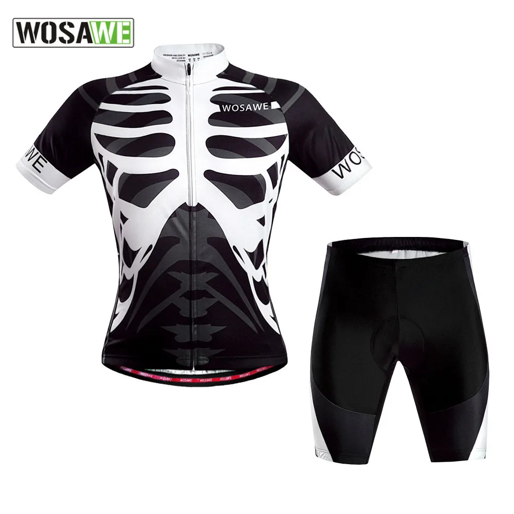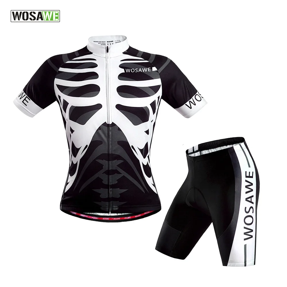 WOSAWE Скелетон MTB велосипедные наборы мужские летние топы с коротким рукавом и шорты велосипедная одежда Джерси велосипедная рубашка одежда