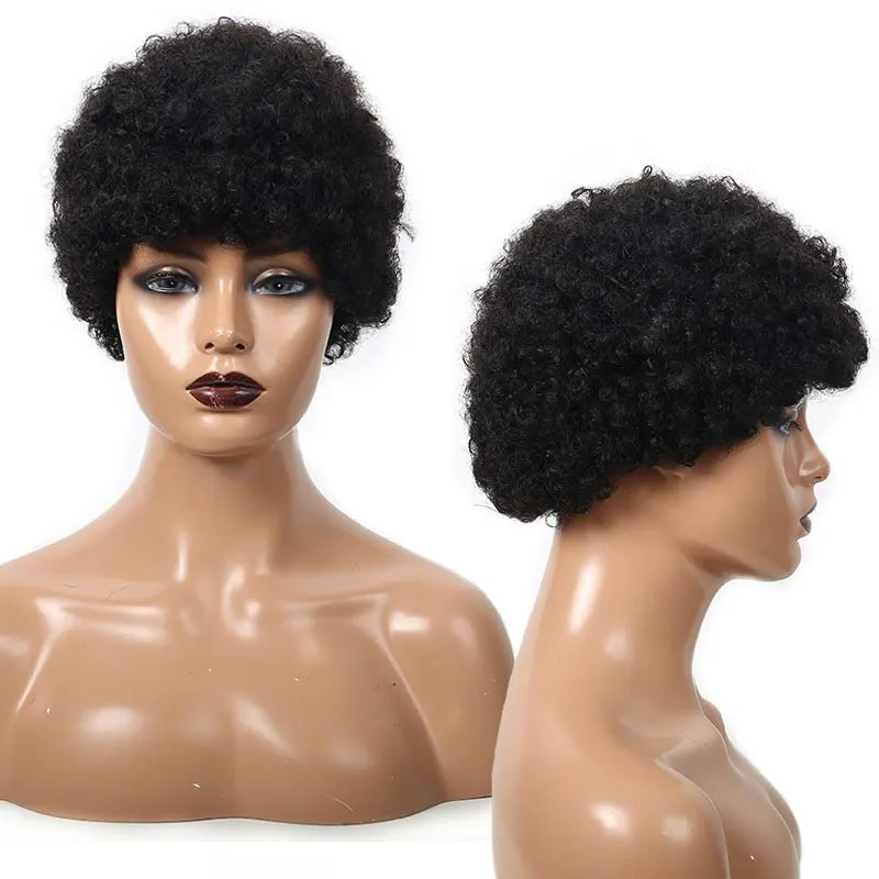 Афро кудрявые Кудрявые Парики монгольский короткий боб парик Пикси 100% человеческие волосы парик для черных женщин парик проса