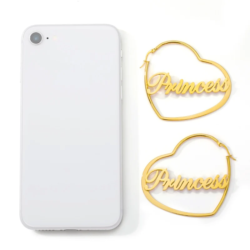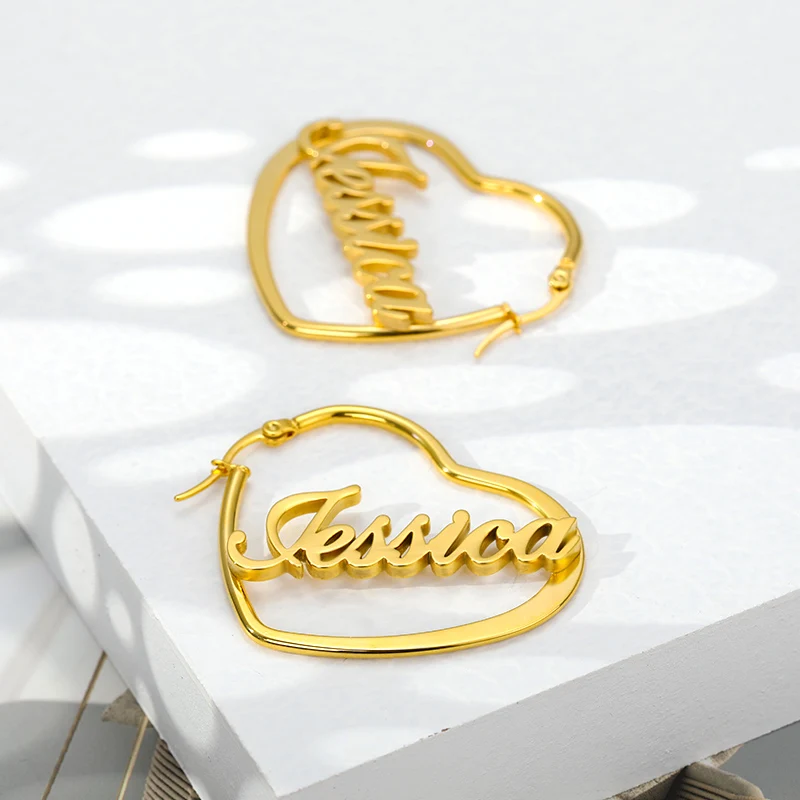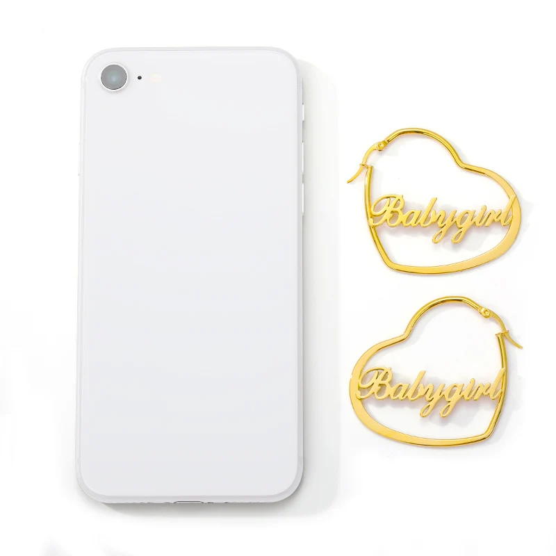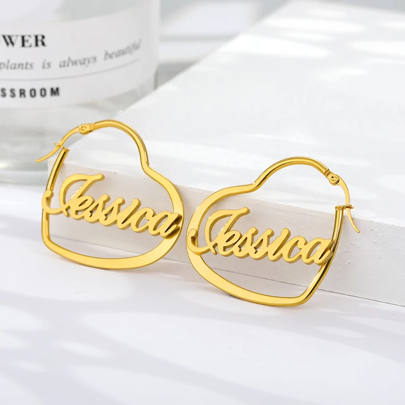 Романтические серьги-кольца в форме сердца для женщин, модные ювелирные изделия, персонализированные серьги из нержавеющей стали с именной табличкой, индивидуальные подарки