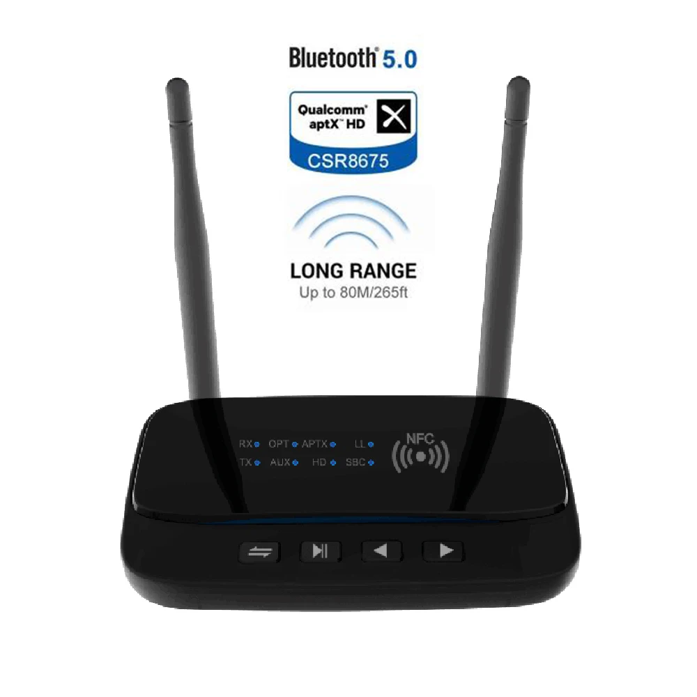 【 15-20 часов долгое время в режиме ожидания и NFC】Встроенный мощный аккумулятор 1000 мАч, он будет предлагать 15 часов в режиме TX и 20 часов в режиме RX твердого использования на одной зарядке, вы также можете использовать его во время зарядки. Поддерживает как RCA/3,5 мм aux аудио подключение цифровой/оптический аудио вход и выход, он совместим практически со всеми устройствами. Это может быть быстрая ссылка через NFC.