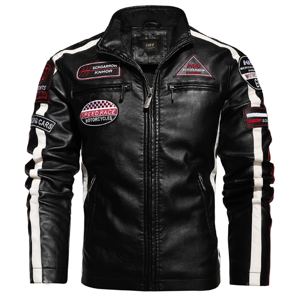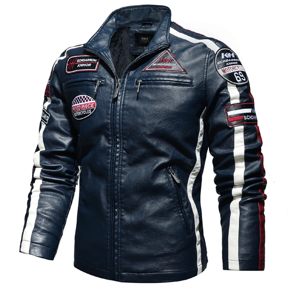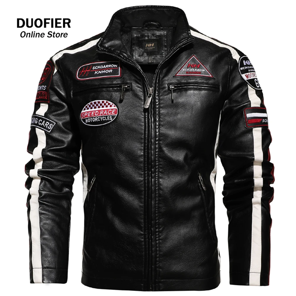 Зимняя мужская мотоциклетная куртка, Бомбер с вышивкой логотипа, облегающее пальто, байкерское пальто, модное мужское пальто на молнии