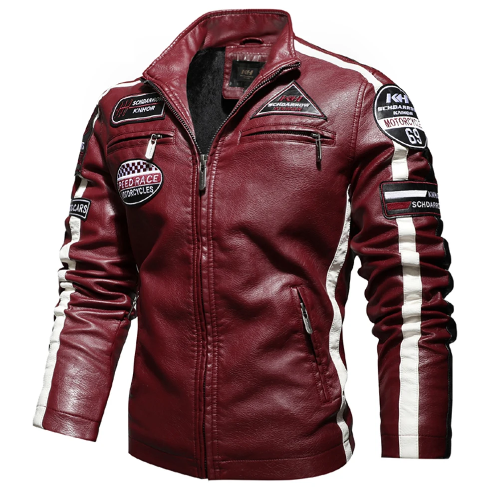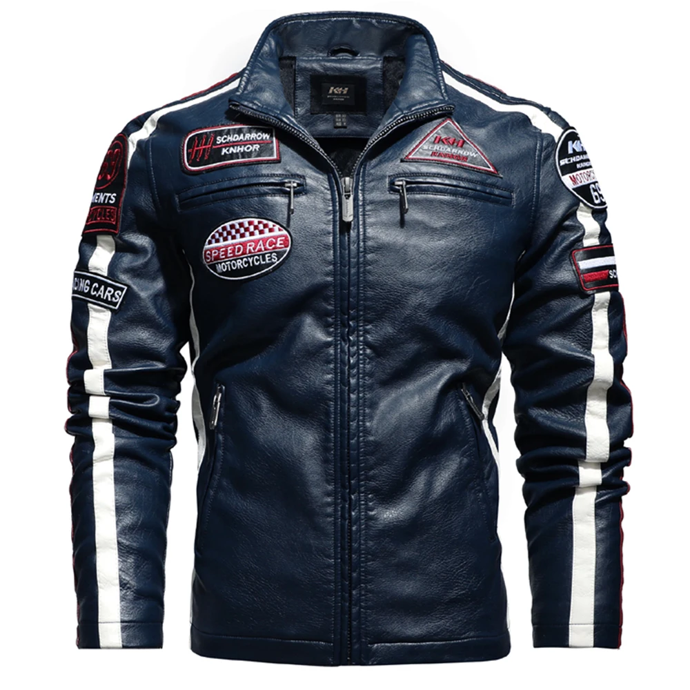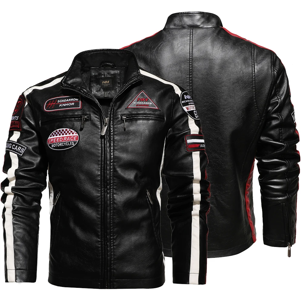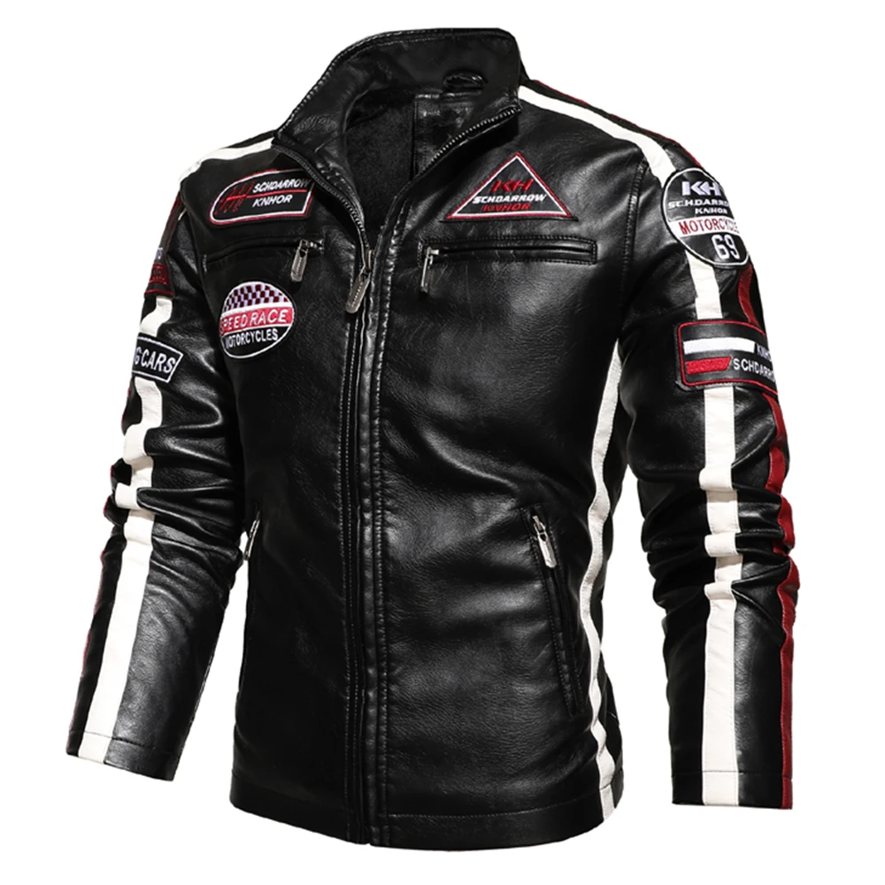 Зимняя мужская мотоциклетная куртка, Бомбер с вышивкой логотипа, облегающее пальто, байкерское пальто, модное мужское пальто на молнии