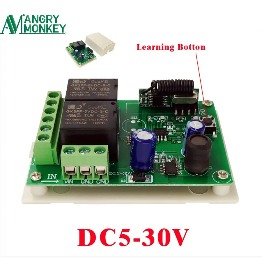 433 мгц радиочастотный пульт дистанционного управления, 5 В, 12 В, 24 В, универсальный беспроводной переключатель, 2 канала, радиочастотный релейный модуль приемника, DC5-30V для умного домаОбласти применения: