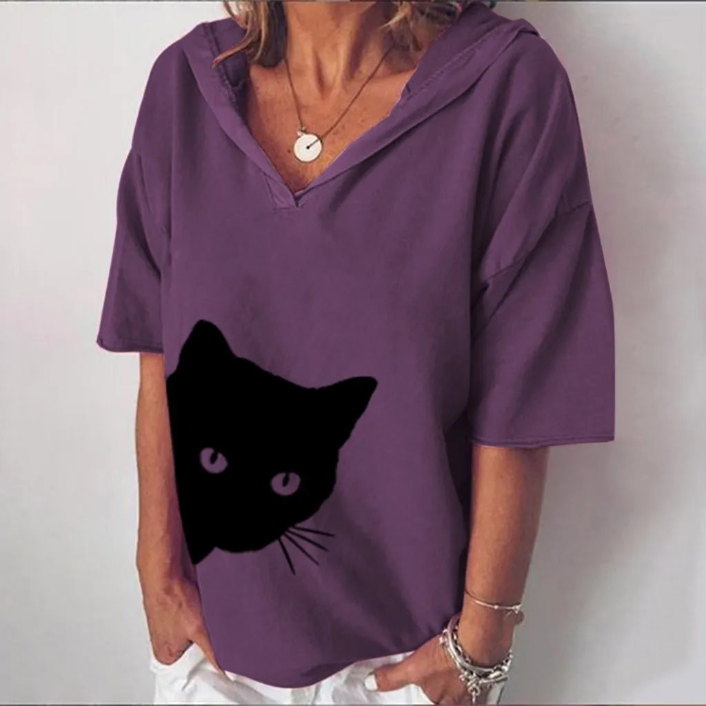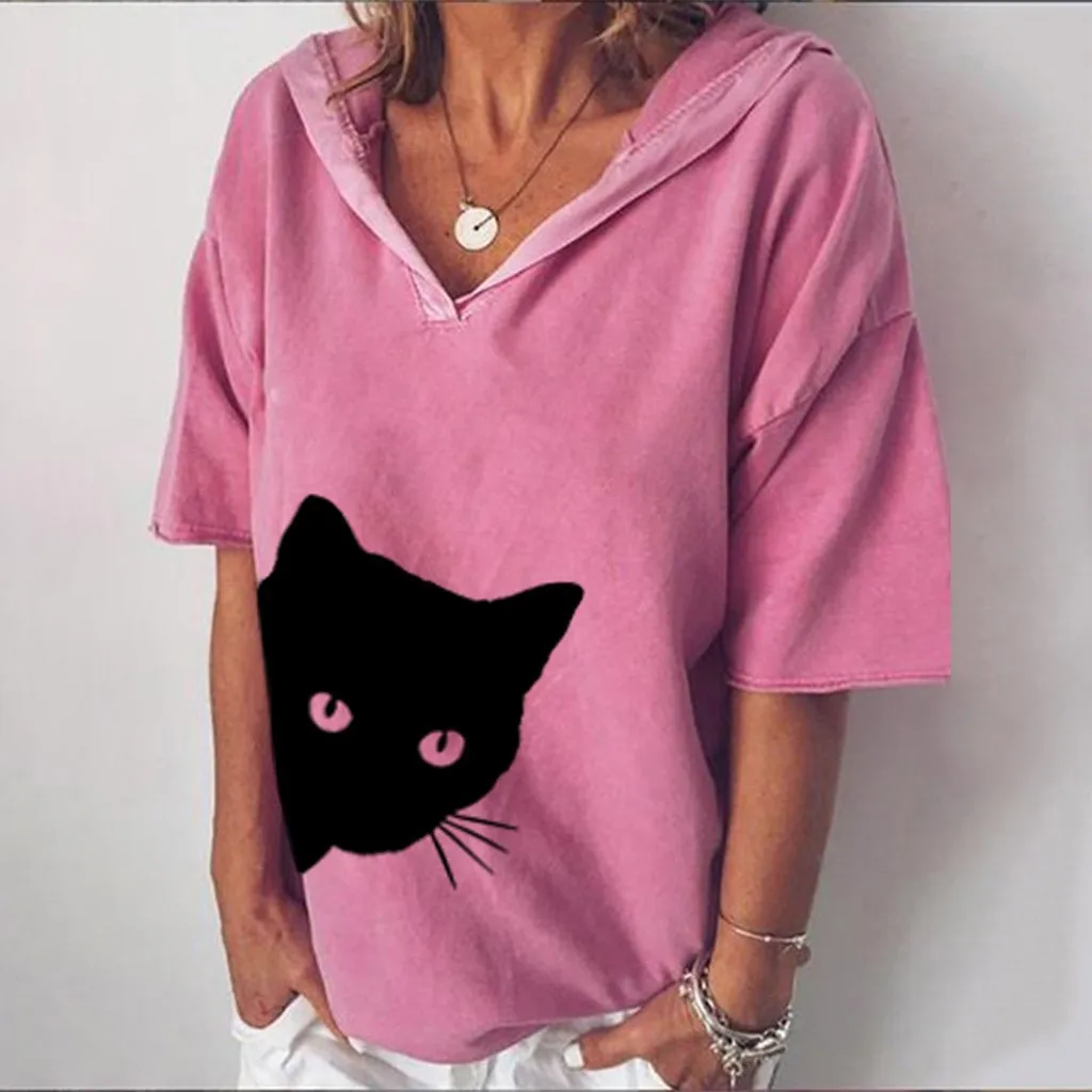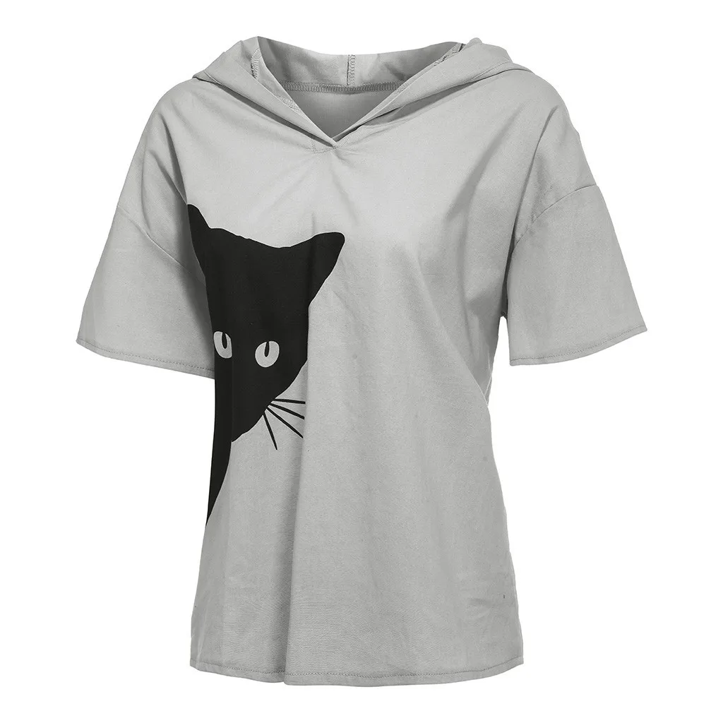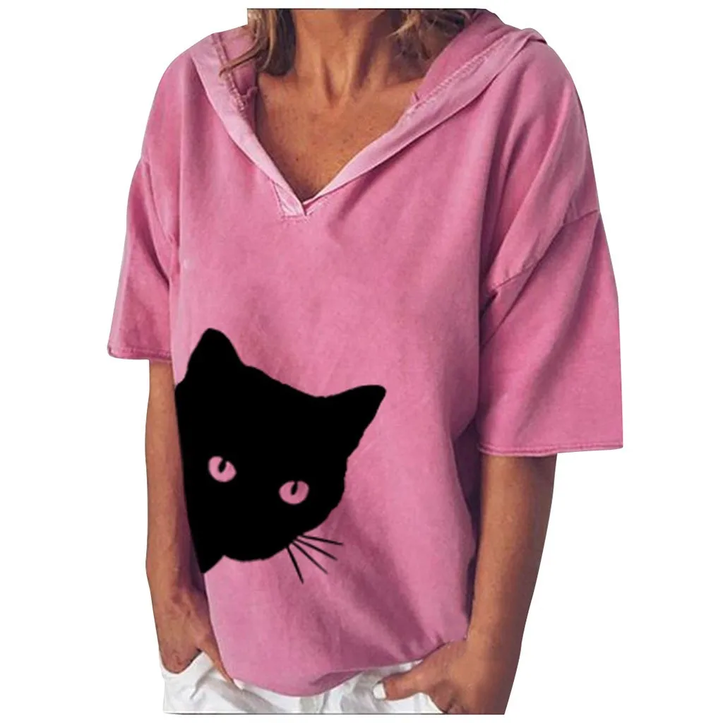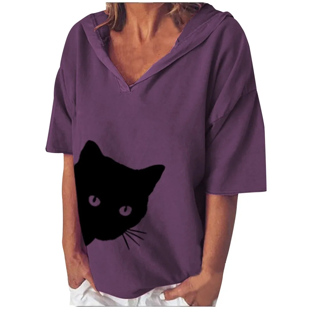 Женские свободные повседневные хлопковые и льняные топы с принтом головы кота, футболка