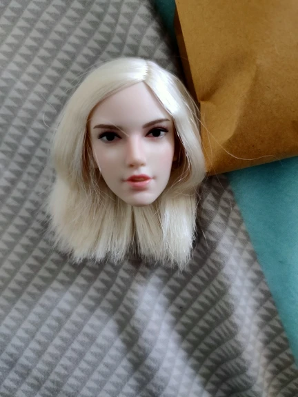 Пришло быстро. Голова подходит по цвету и размеру. Волосы не очень приятные на ощупь, для начала пойдёт, к тому же голова прошита не полностью. Макияж ровный без брака.