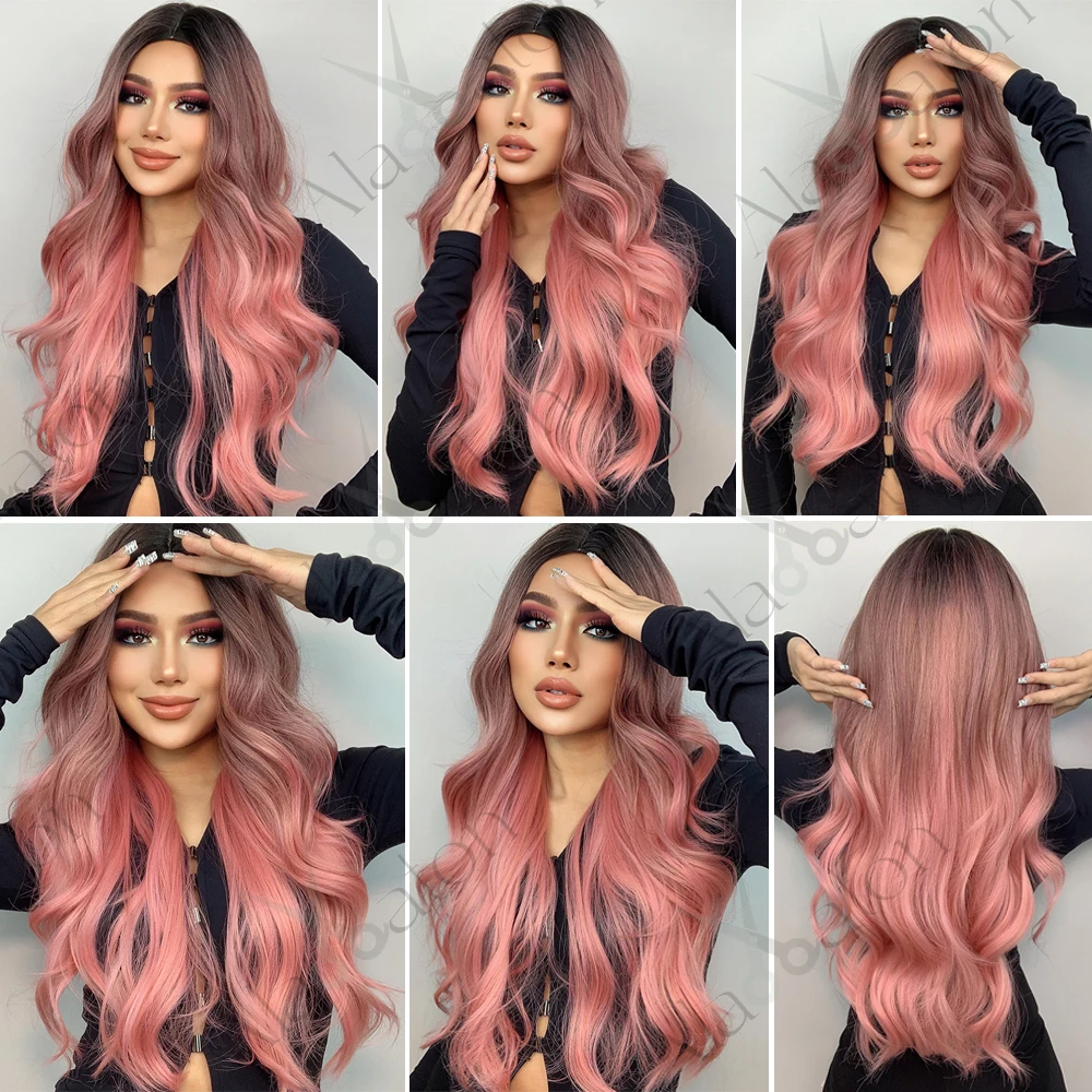 Парики женские из натуральных синтетических волнистых волос для косплея, длинные, с эффектом омбре