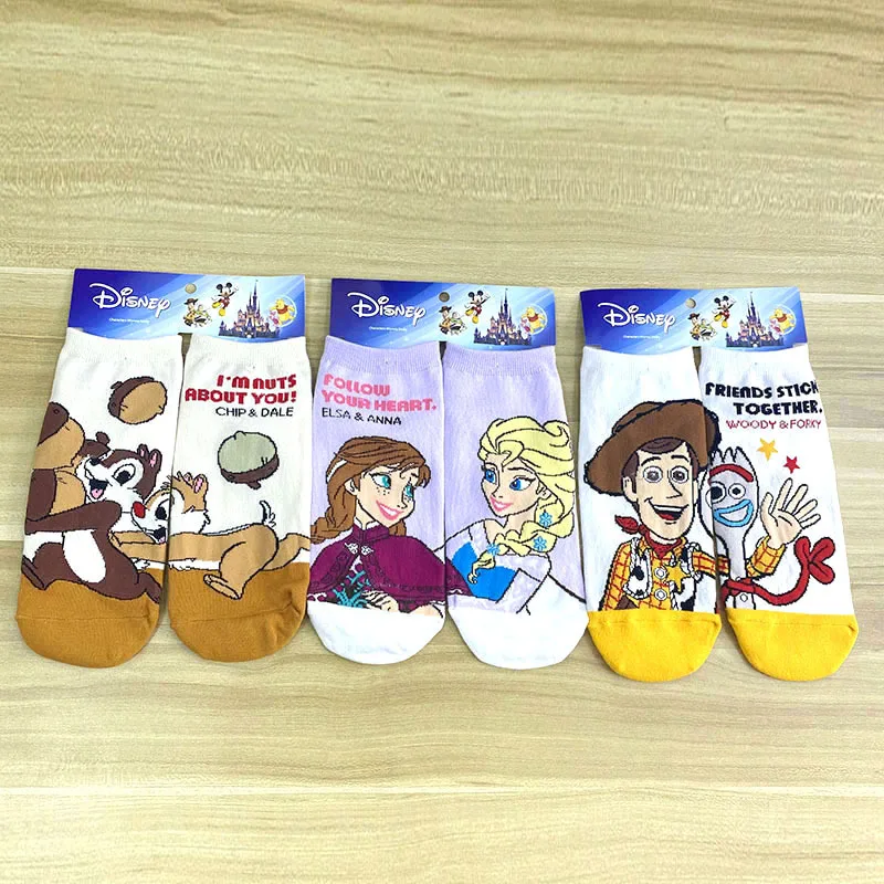 Носки с героями мультфильмов Дисней Микки из мультфильма Дональд Дак Аиша Анна, носки для взрослых, женские носки из чистого хлопка