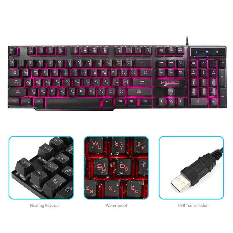 R8 Трехцветная игровая клавиатура со светодиодной подсветкой, набор мышей, комбинированная USB Проводная полноклавишная профессиональная мышь, клавиатура для ПК и ноутбука
