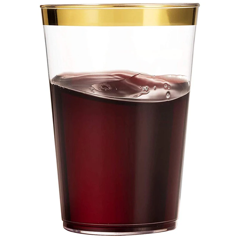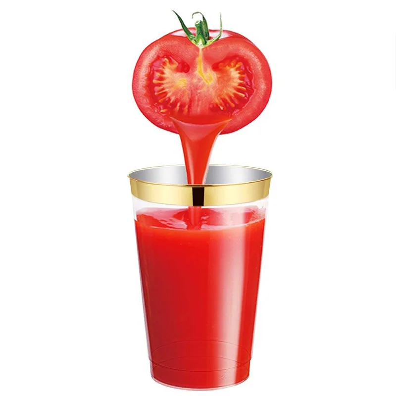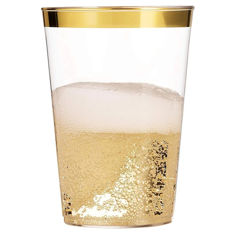100х Золотые пластиковые чашки, 10 унций, прозрачные пластиковые чашки, стаканчики, чашки с золотой оправой, Необычные одноразовые Свадебные чашки, элегантные чашки вечерние с
