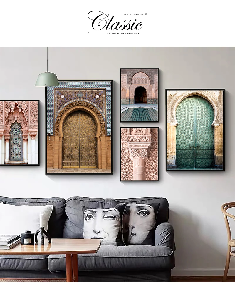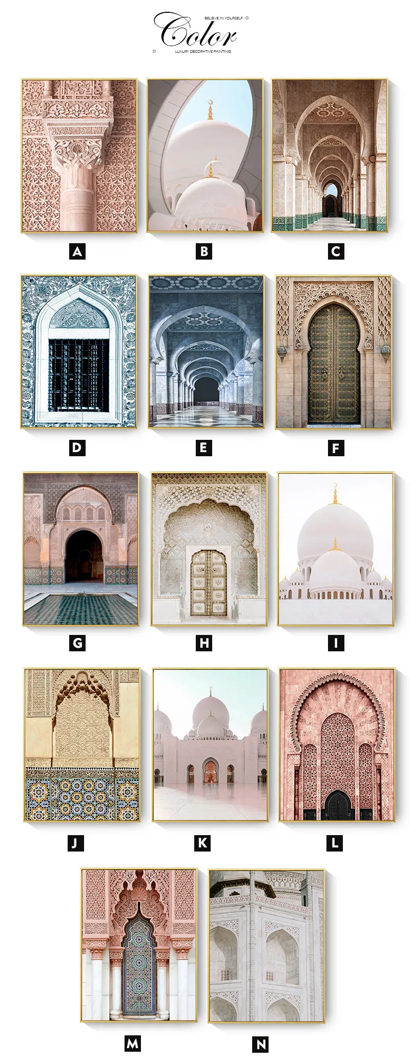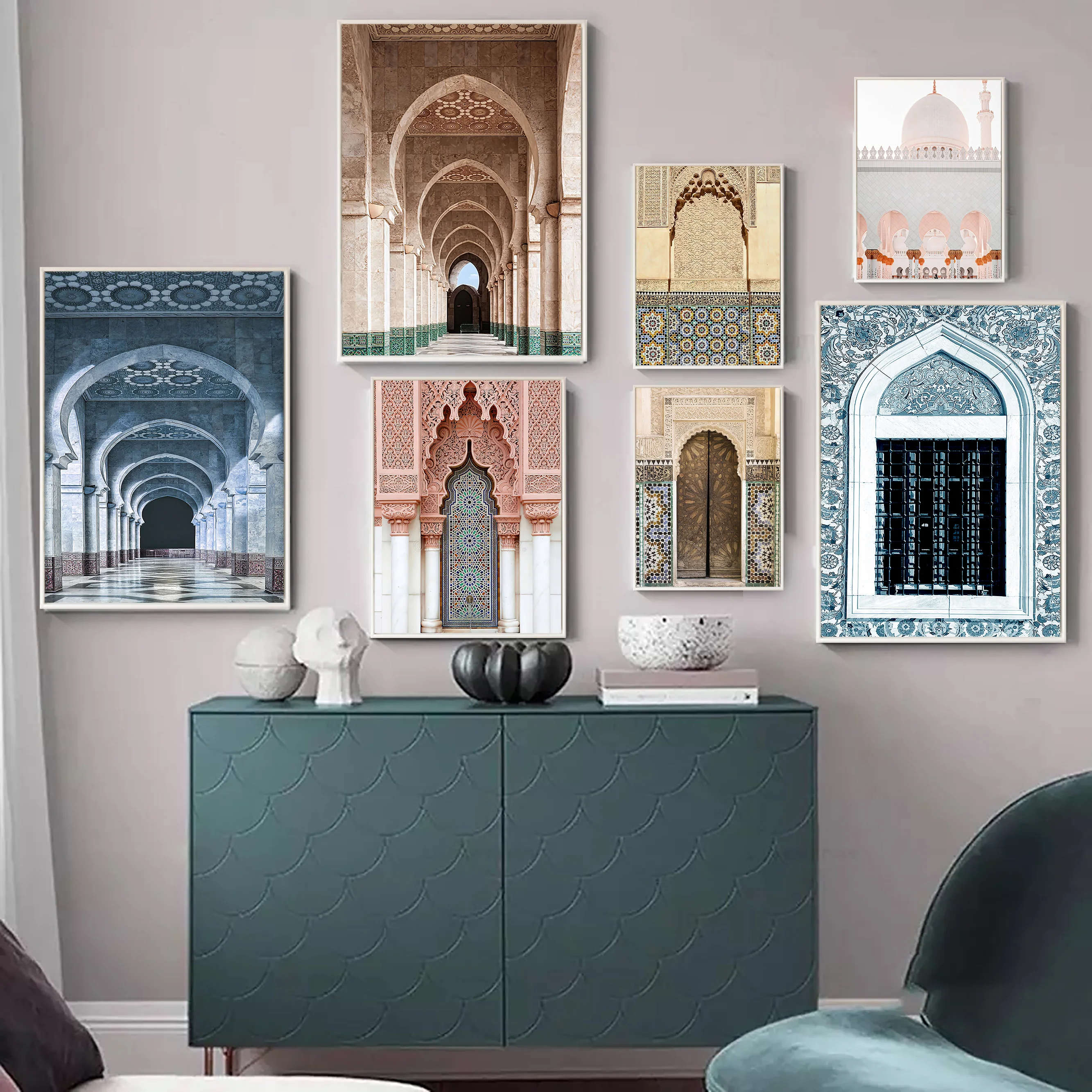 Винтажный постер исламских ворот, мечеть, архитектура, дверь, холст...