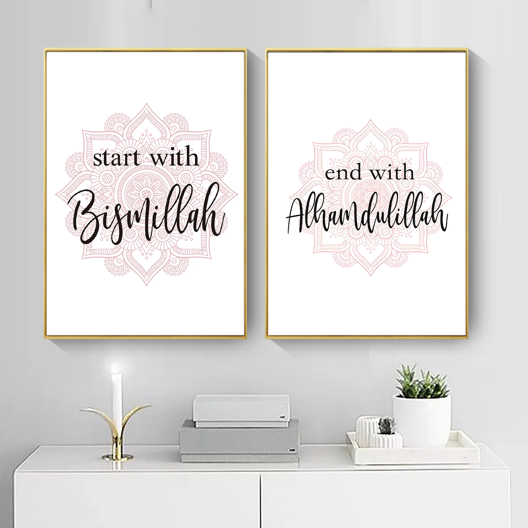 Мусульманский плакат с цитатами Bismillah, черно-белый Принт, насте...