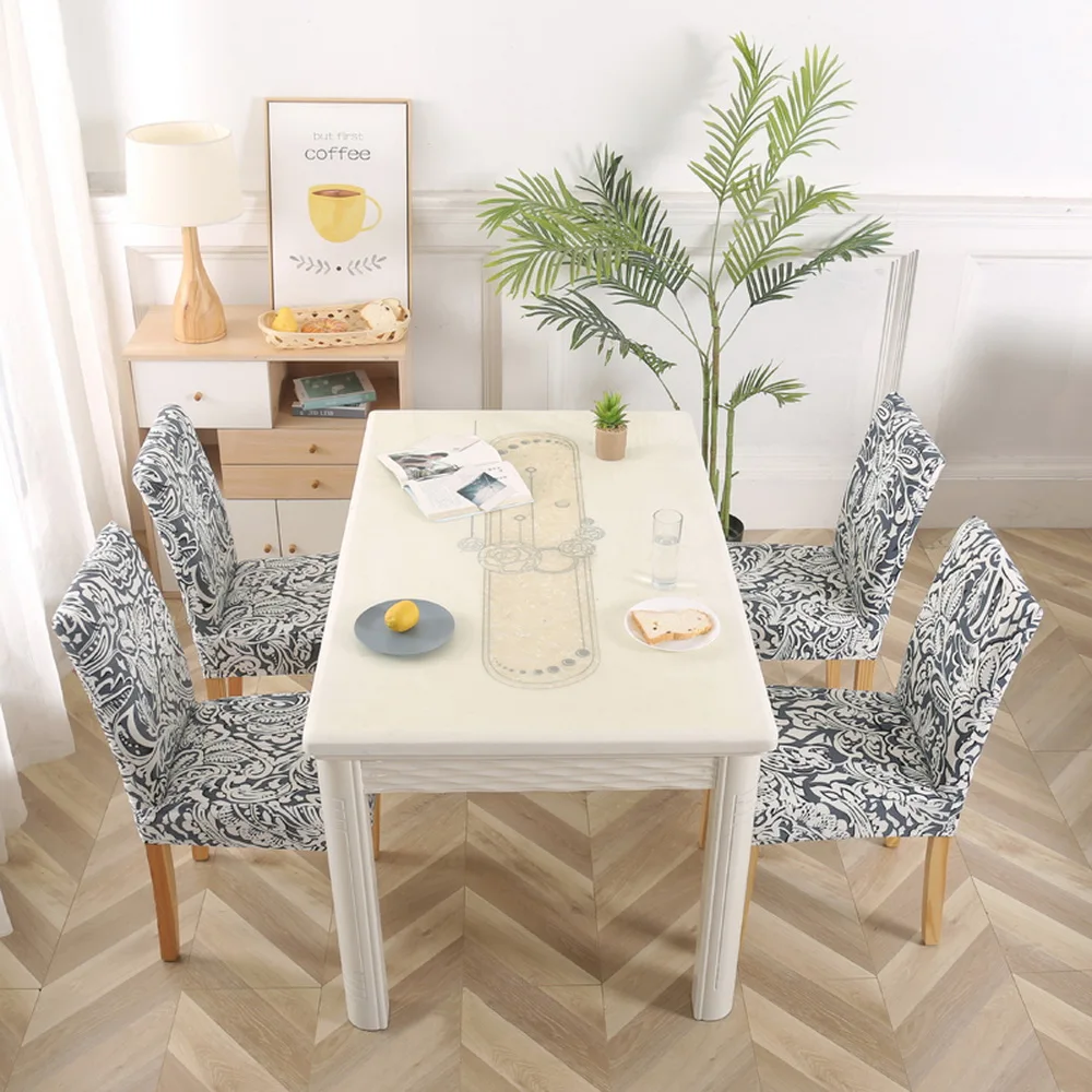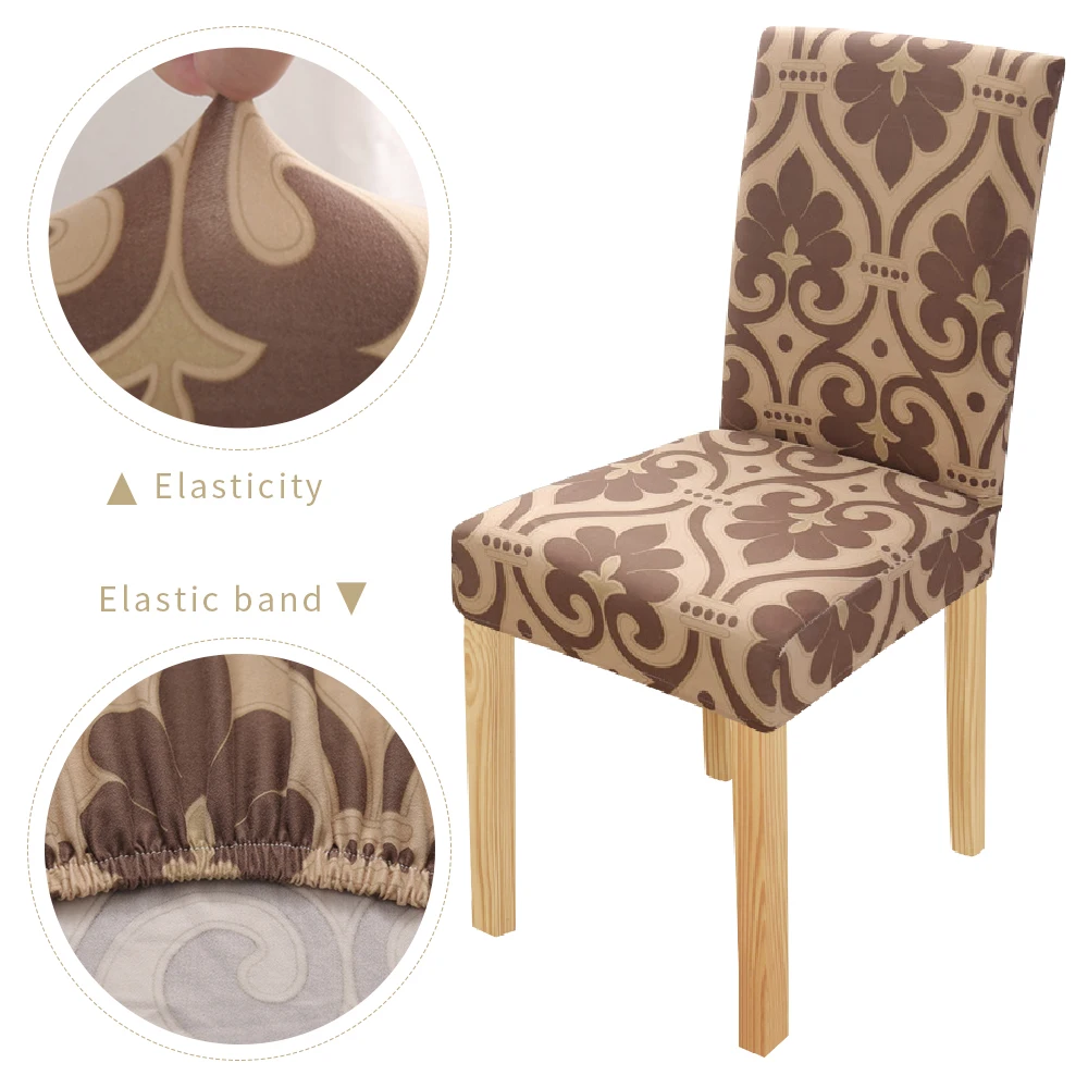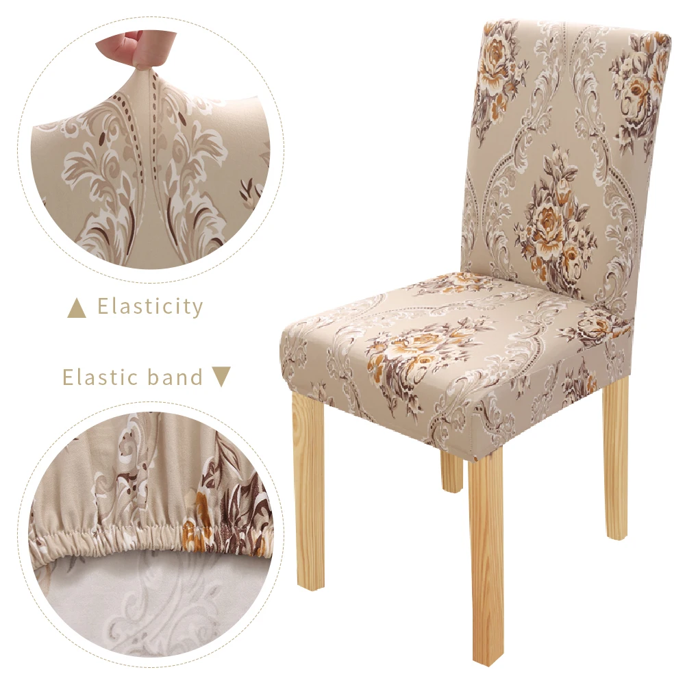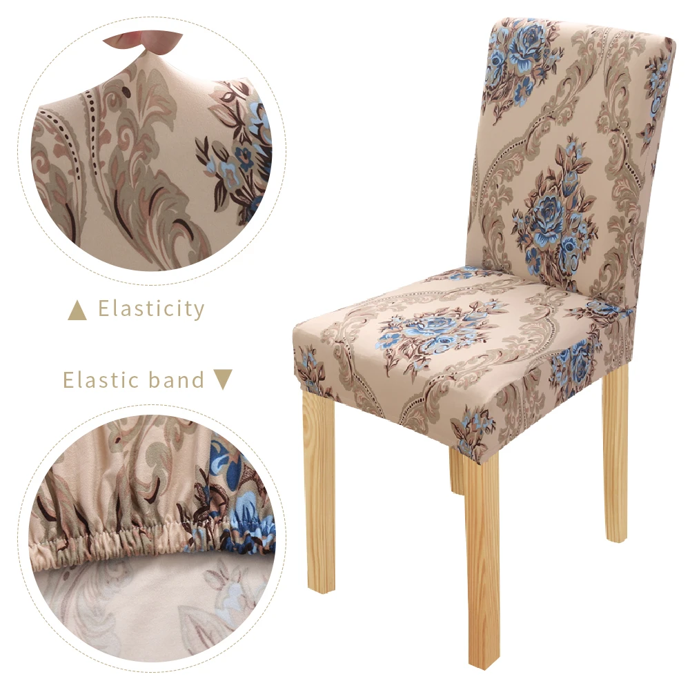 Особенности:Потрясающий Материал: Изготовлен из мягкого полиэстера и спандекса, очень удобно сидеть.Простая установка: легко надевать на стул из-за высокой эластичной ленты на 360 градусов.Модный дизайн: доступно несколько узоров на выбор. Узор полон различных элементов, которые будут соответствовать вашей домашней среде, освежают внешний вид вашего обычного стула, идеальное украшение для вашего стула.Хорошая защита: Толстая крышка может защитить ваш стул от молочной пыли или царапин, мягкие и против морщин, прочные и долговечные.Легкий уход: Машинная или ручная стирка с ним.Широкое применение: чехол для стула подходит для большинства размеров. Он используется для отеля, свадебного банкета, ужина, встречи, торжества, церемонии, украшения семейной столовой.