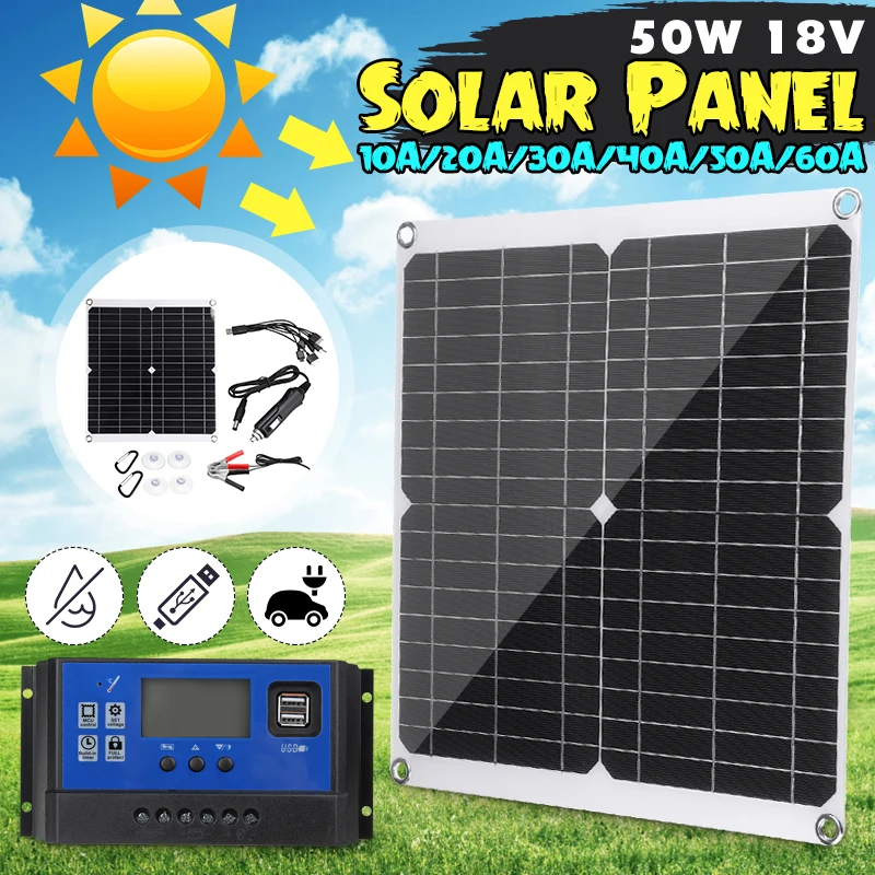 Гибкая монокристаллическая солнечная панель для автомобиля, лодки, дома, 12 В, 24 В, 100 Вт, солнечная батарея может заряжаться, водонепроницаемая, с ШИМ-контроллером