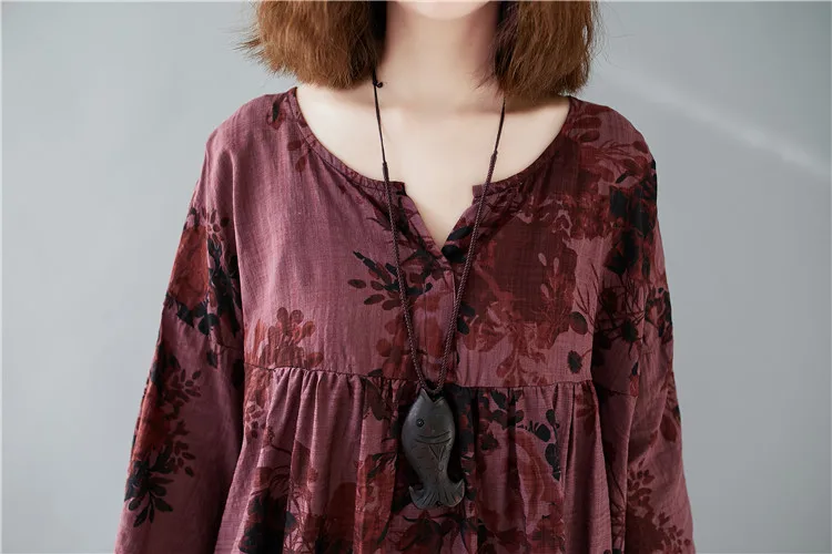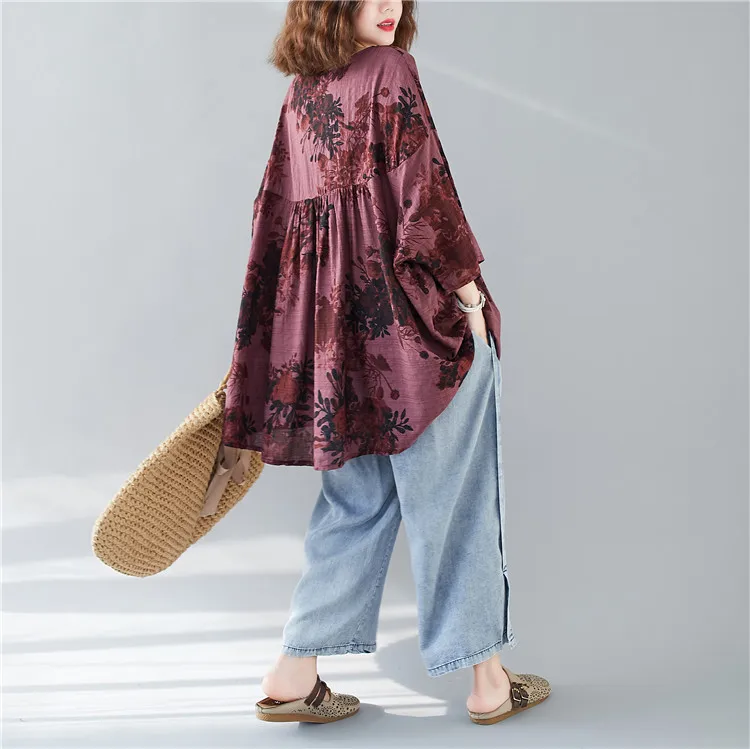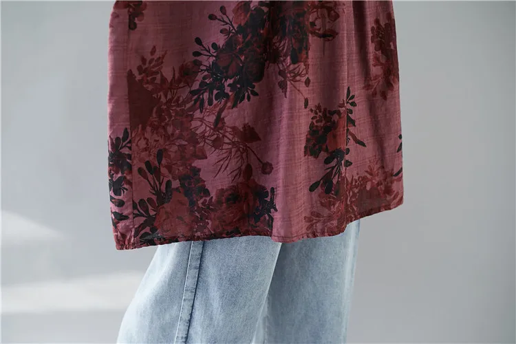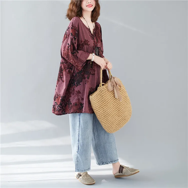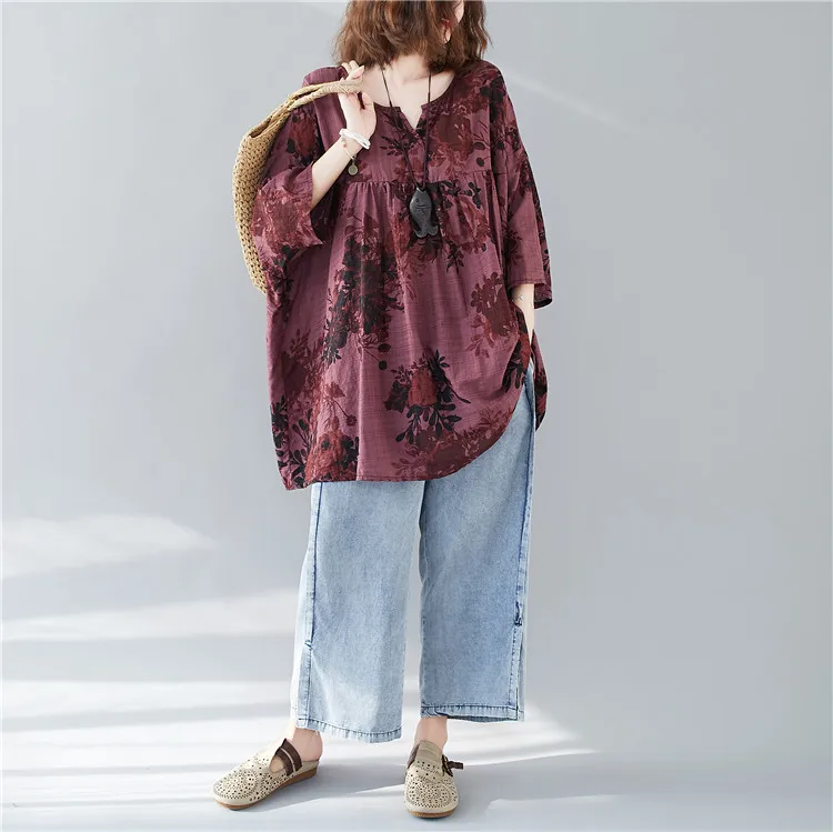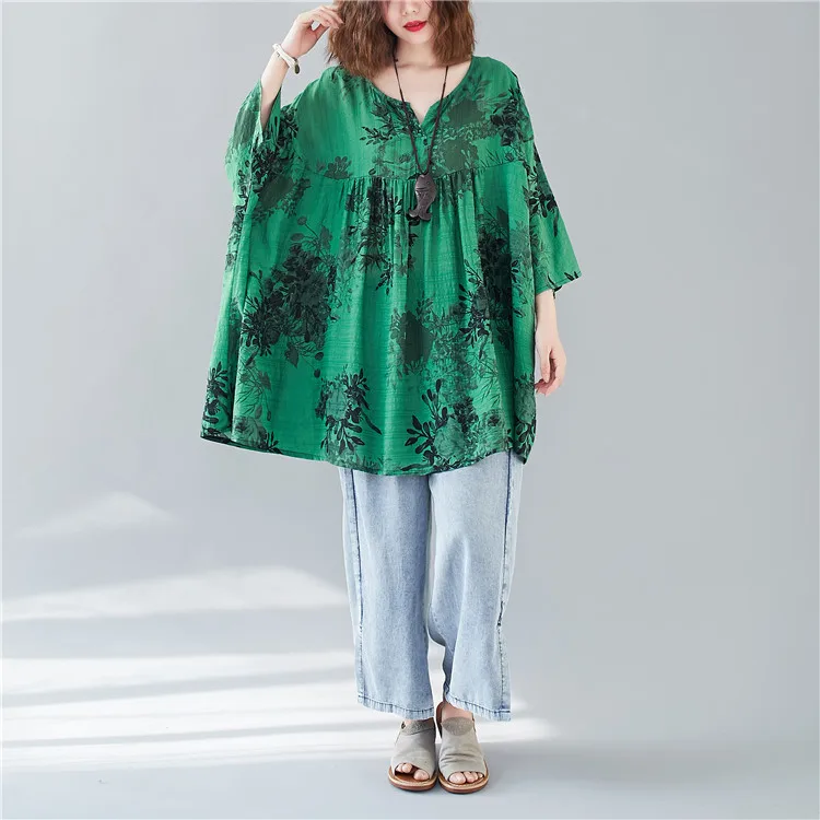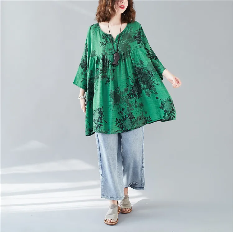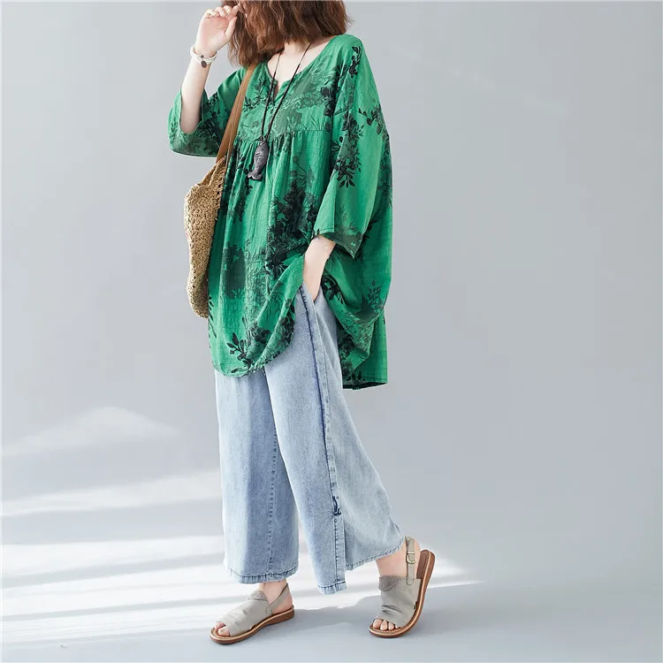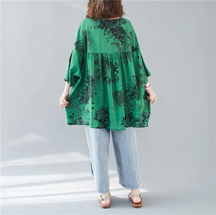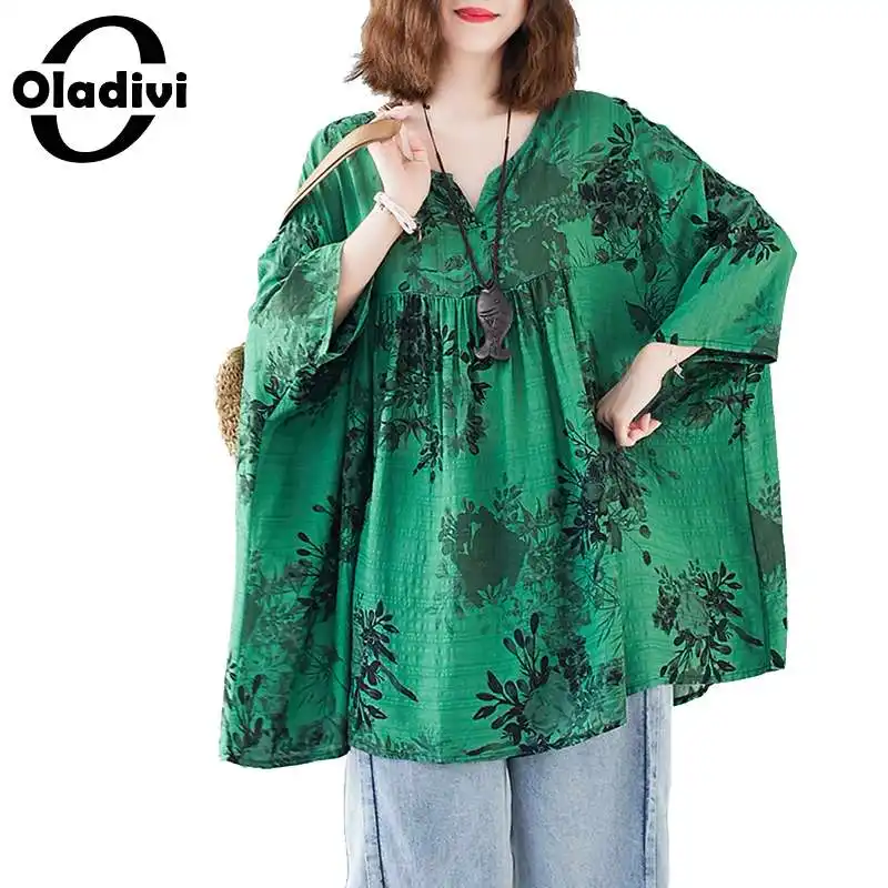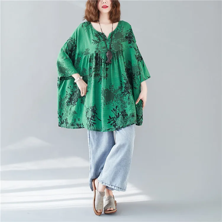 Блузка Oladivi Женская в стиле оверсайз из хлопка и льна, модная повседневная Свободная рубашка с принтом, Топ-туника, 8XL, 7XL, на лето