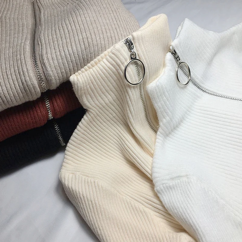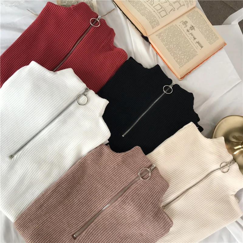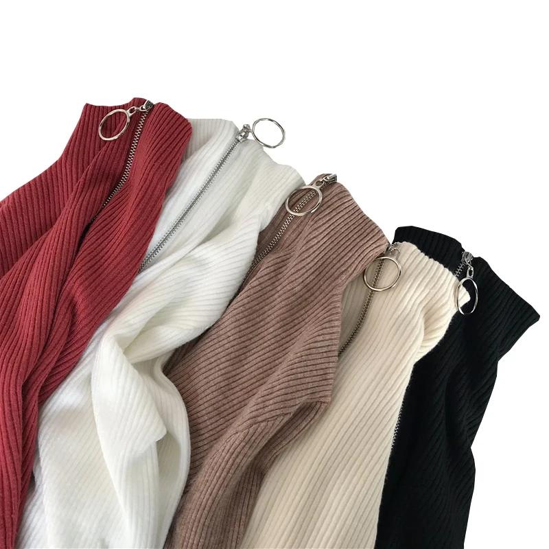 Свитер женский трикотажный, с воротником-хомутом и длинным рукавом, на осень