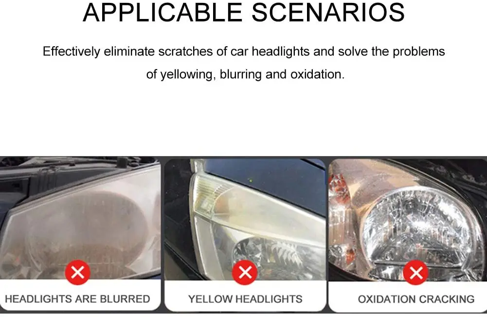 * Эффективность: эффективно устраняет царапины автомобильных фар и решает проблемы пожелтения, размывания и окисления.* Фары: подходят для новых фар, помогают поддерживать и защищать фары.* Восстановление: восстановление фар, повышение видимости и безопасности.* Простота в использовании: Простота в использовании и эксплуатации, высокая прозрачность и сильное сцепление.* Продлить срок службы: помочь продлить срок службы автомобильных фар и задержать их старение. Сделайте фары ярче и совершеннее.
