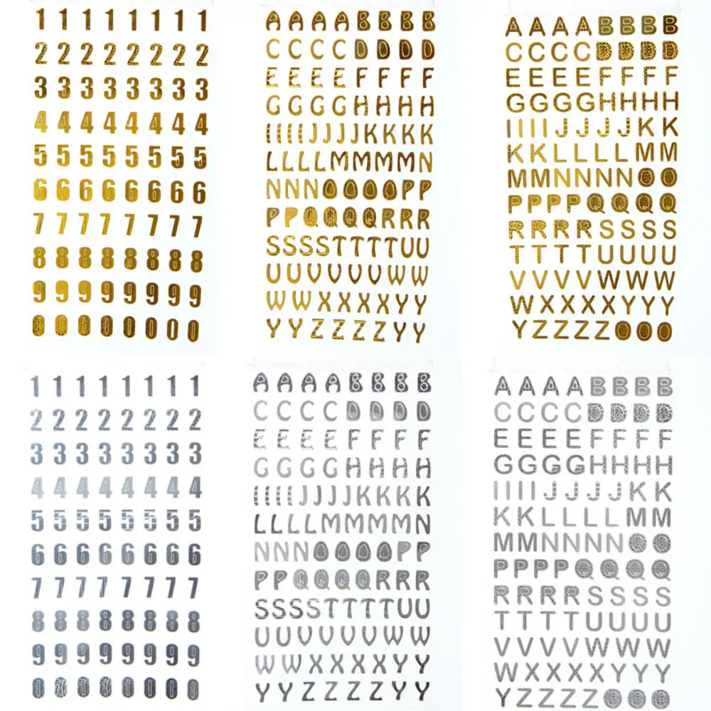 3 листа Золото Серебро буквы цифровой номер стикер для DIY альбом р...