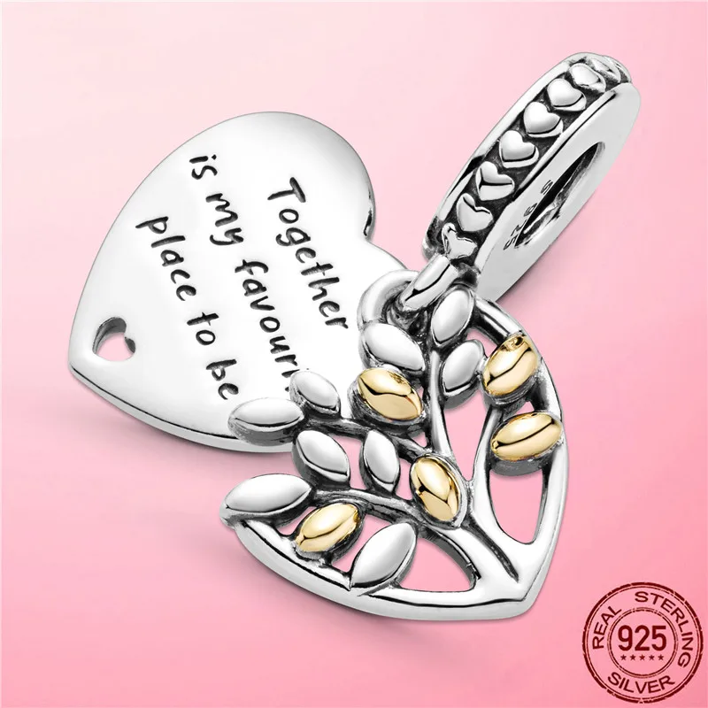Женские серебряные бусины-подвески в виде теннисных мячей, сердца, семейного дерева, подходят для оригинальных браслетов Pandora, серебряные украшения в подарок