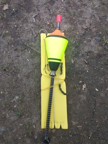 Отличный поплавок. Должен работать при поклевке. Но, только под крупную рыбу, так как поплавок большой, наверное под грузик грамм 10.