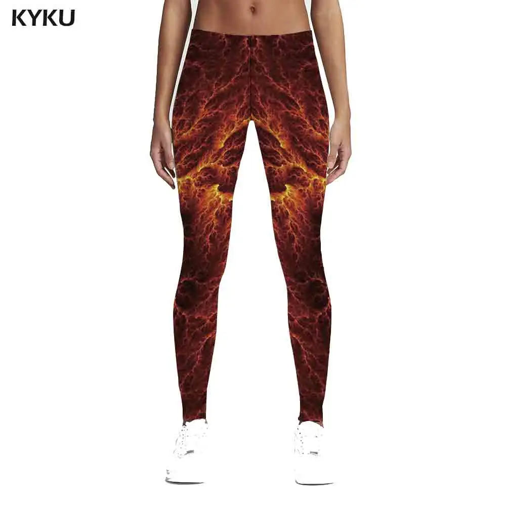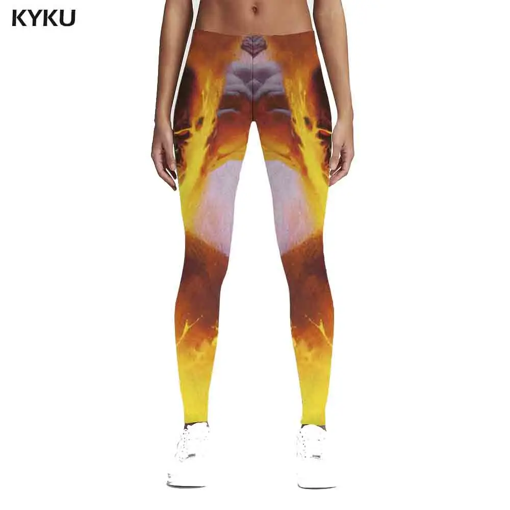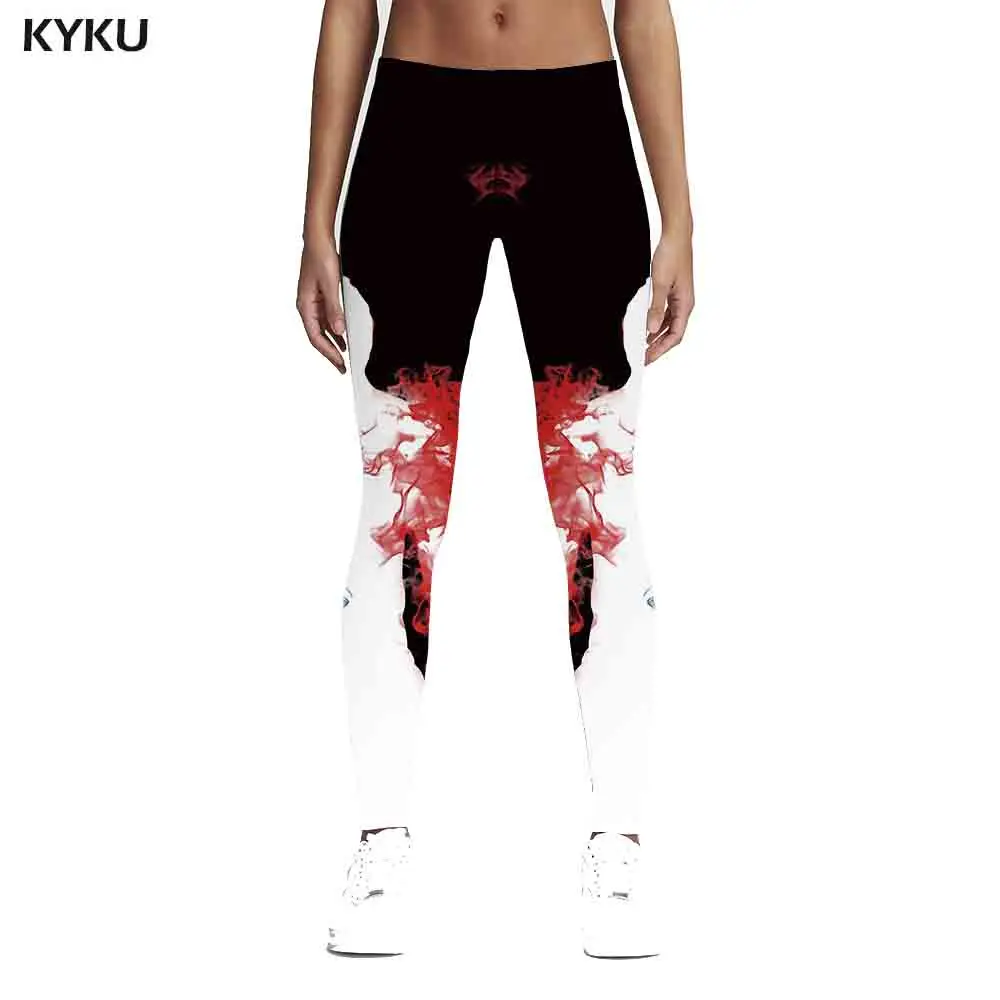 Женские леггинсы с принтом KYKU Flame, черные и белые штаны с принтом, сексуальные спортивные штаны, эластичные женские леггинсы, повседневные джеггинсы